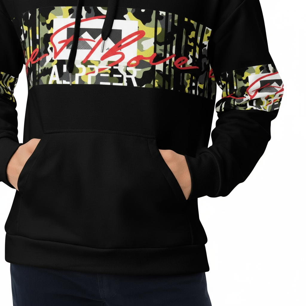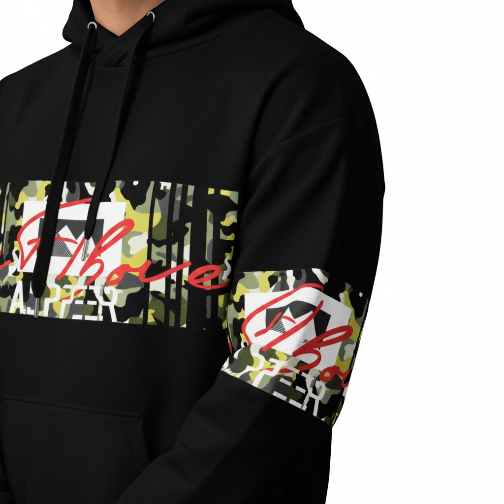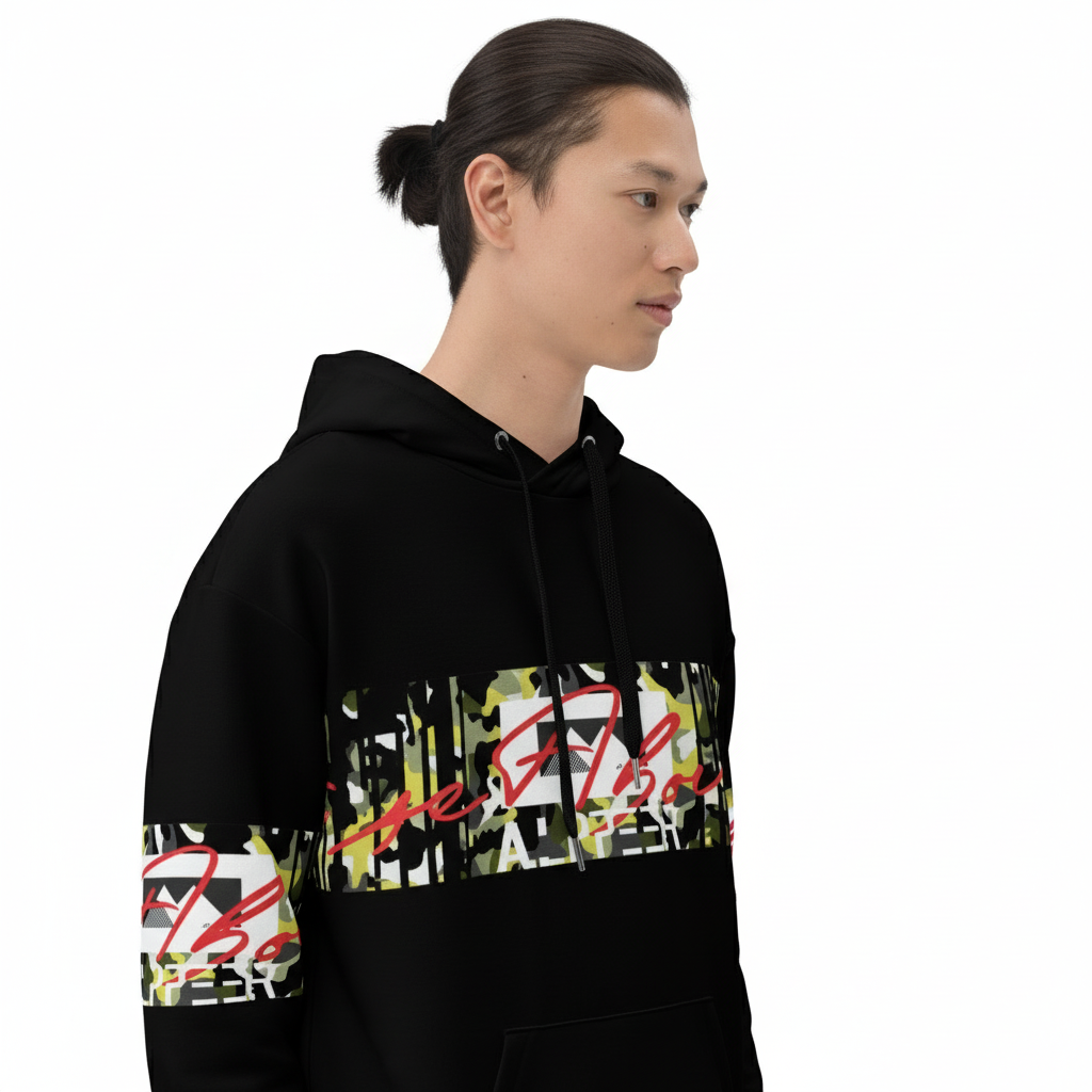 Command attention with the Alppeer Signature Camo Stripe Unisex Hoodie—a bold statement piece that fuses urban streetwear with outdoor adventure aesthetics. This isn't just a hoodie; it's your signature look that announces you're part of the Alppeer lifestyle.