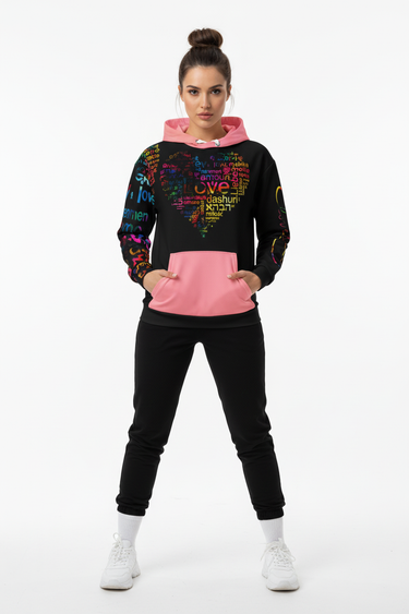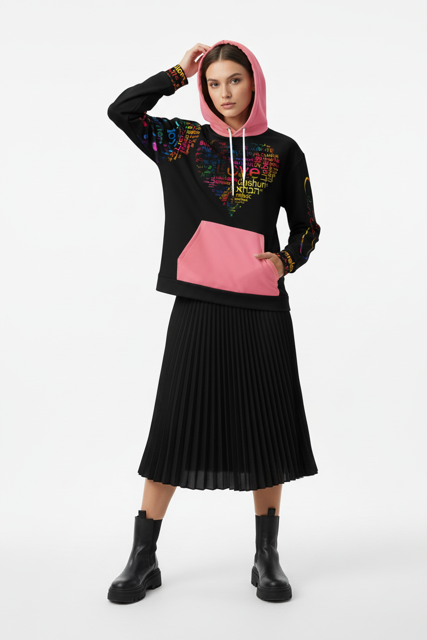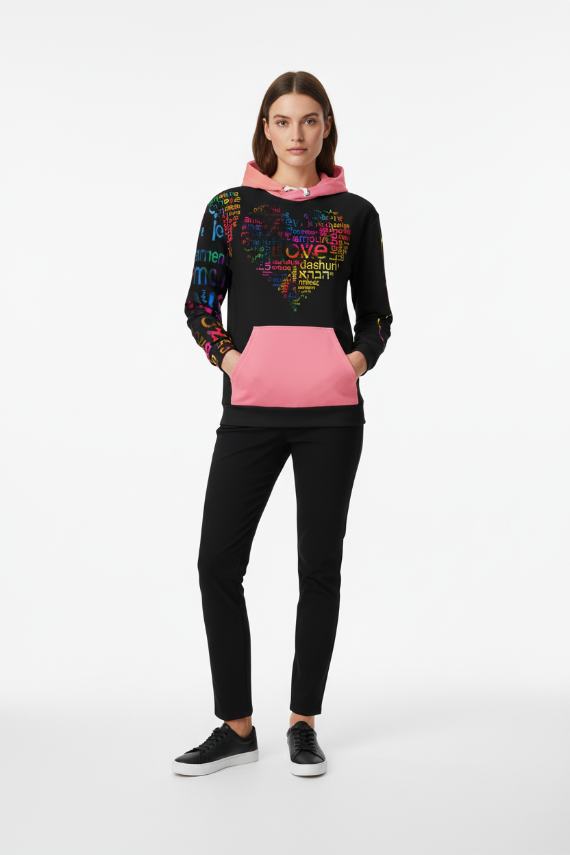 - Double-lined hood with design on both sides