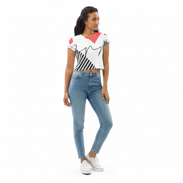 Turn heads and express your unique style with the Alppeer Crop Tee. Featuring a vibrant all-over print design, this cropped tee is perfect for those who love to make a statement while staying comfortable and on-trend.
