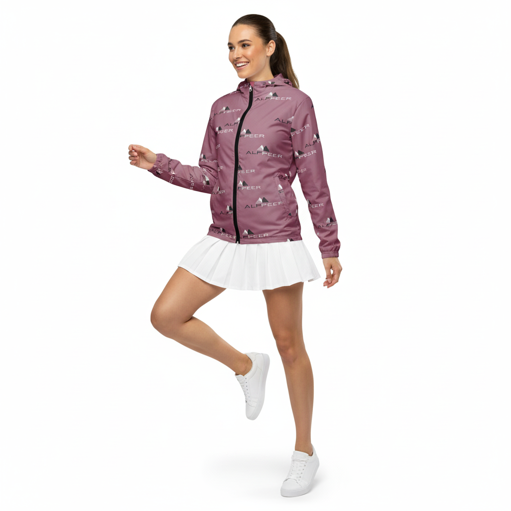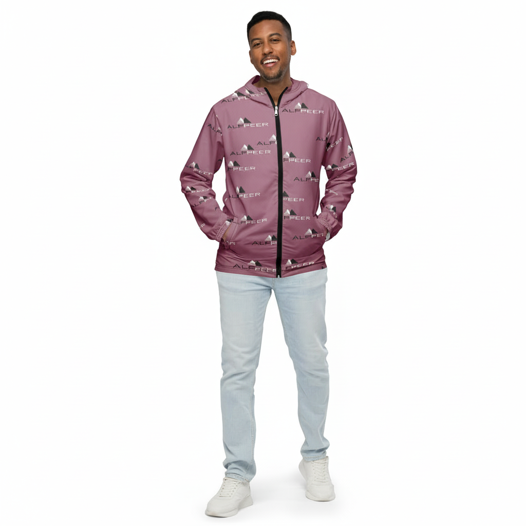 The Alppeer Classic windbreaker makes a bold statement with its distinctive all-over brand pattern in sophisticated mauve. Designed for those who appreciate premium activewear with personality, this windbreaker delivers weather protection and style in equal measure.