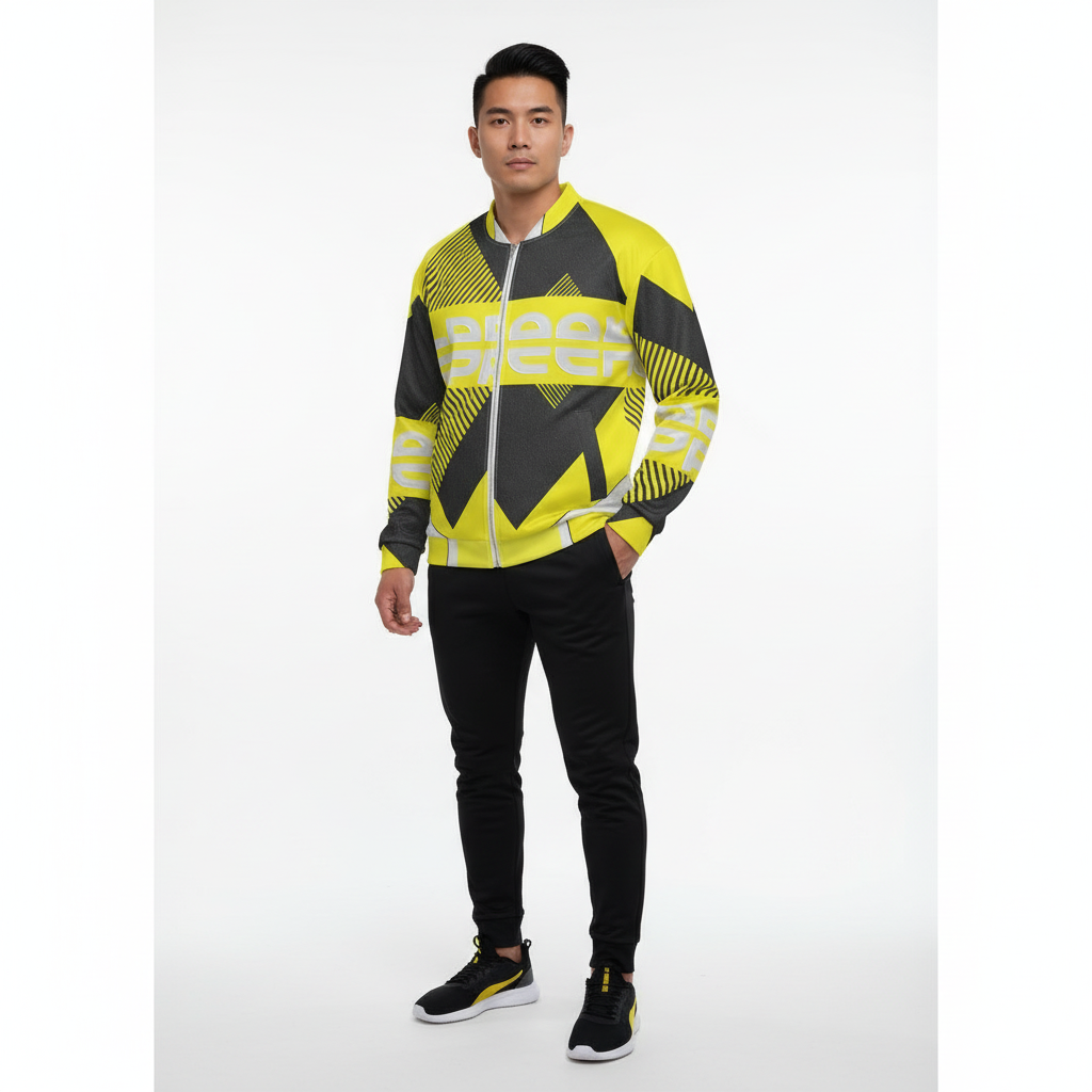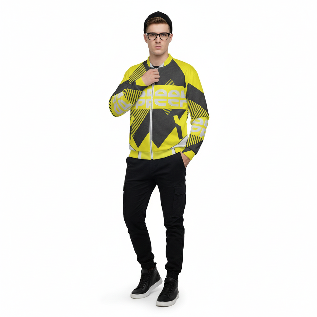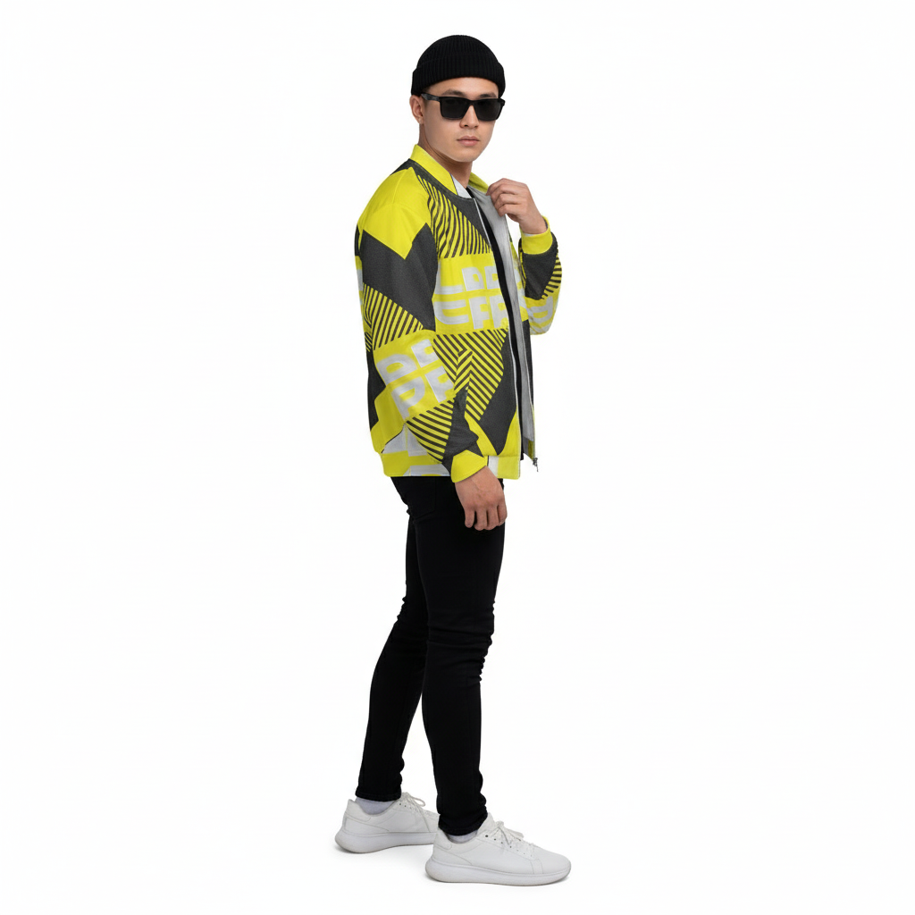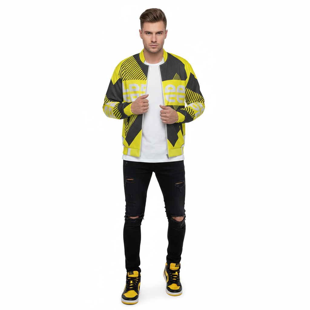 The Subani Bomber Jacket makes a powerful statement with its striking yellow and black geometric design. Featuring bold diagonal stripes, dynamic patterns, and prominent ALPPEER branding, this all-over print bomber jacket brings high-energy style to your streetwear rotation. The eye-catching design turns heads whether you're hitting the streets or the skate park.