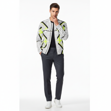 - Premium all-over print featuring bold geometric patterns for standout style