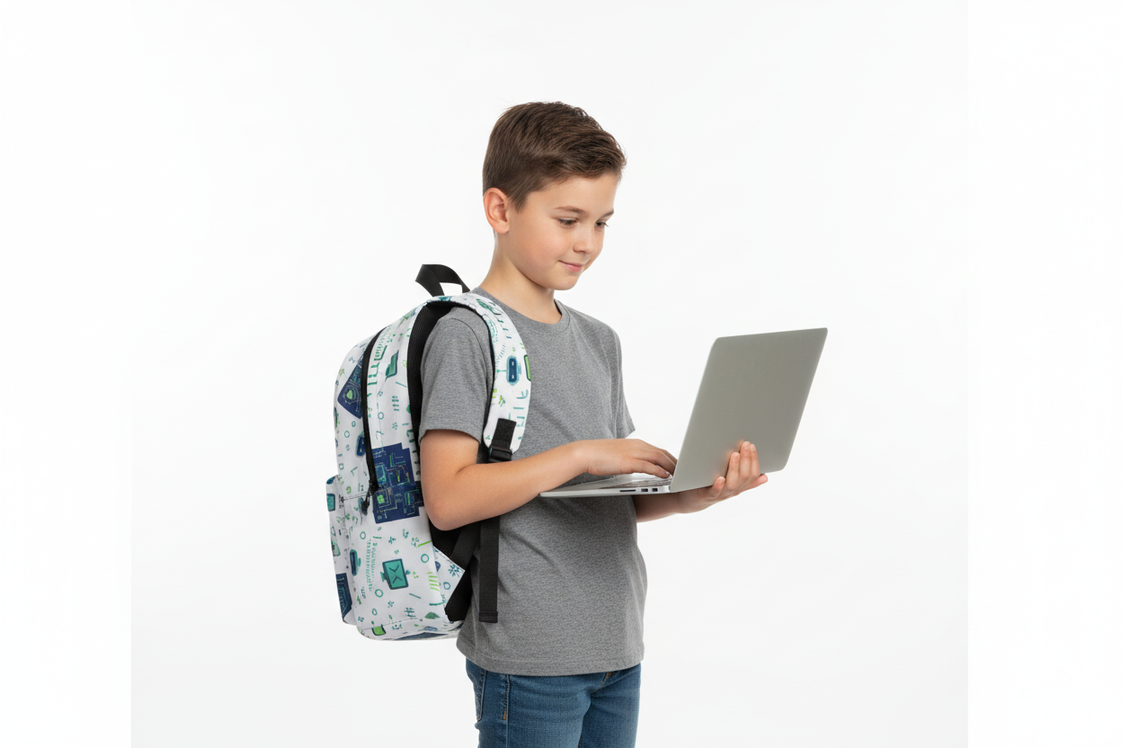 Perfect for tech-loving kids ages 4-8, this water-resistant backpack keeps all their gear safe and organized for school, coding club, and STEM activities. The futuristic design celebrates their passion for technology while providing practical functionality.
