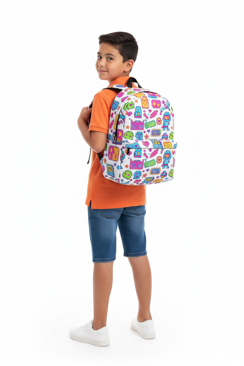Whether they're heading to school, gaming club, or weekend adventures, this retro pixel art backpack makes every day a winning game!