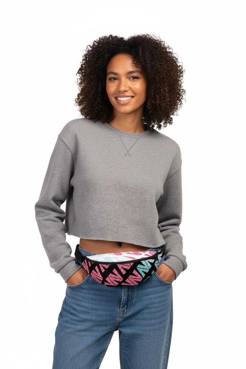 Bold geometry meets hands-free convenience. The Geo Luxe fanny pack features a striking pink and turquoise geometric print that commands attention while keeping your essentials secure and accessible.