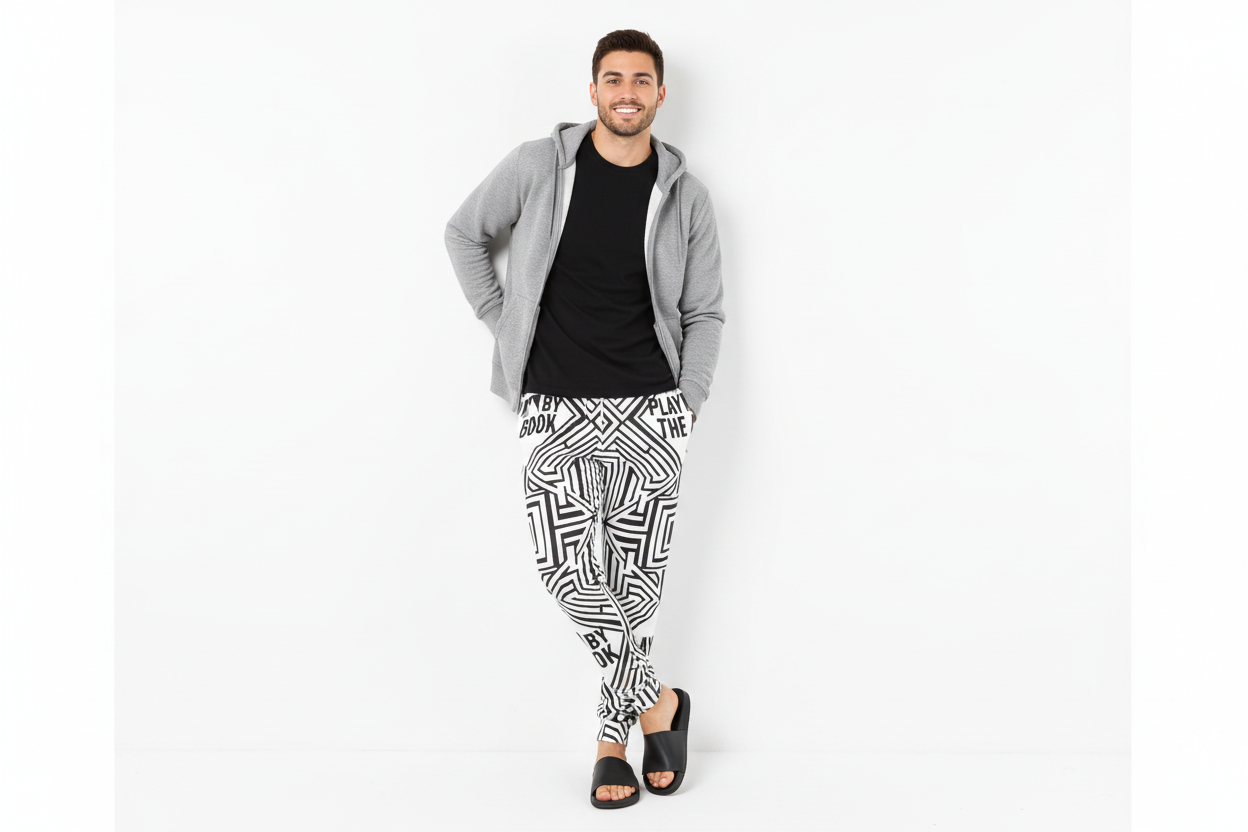 These statement joggers pair effortlessly with solid tees, hoodies, or athletic tops. Wear them to the gym, style them for casual outings, or rock them as part of a bold streetwear look. The monochromatic geometric print makes them surprisingly versatile while ensuring you stand out from the crowd.