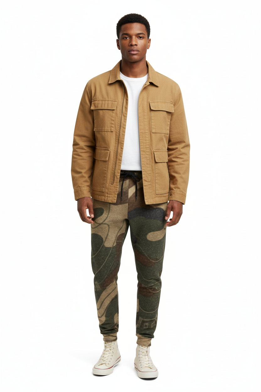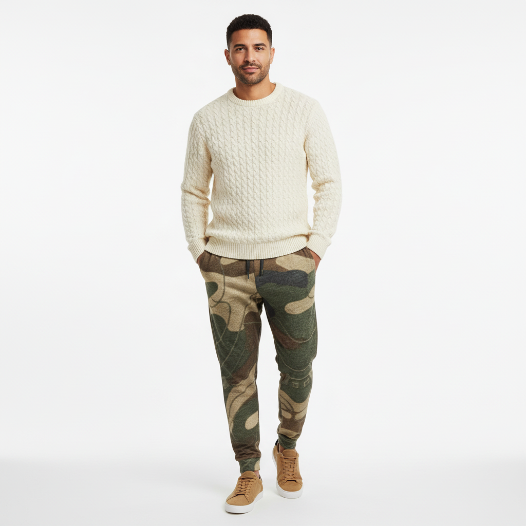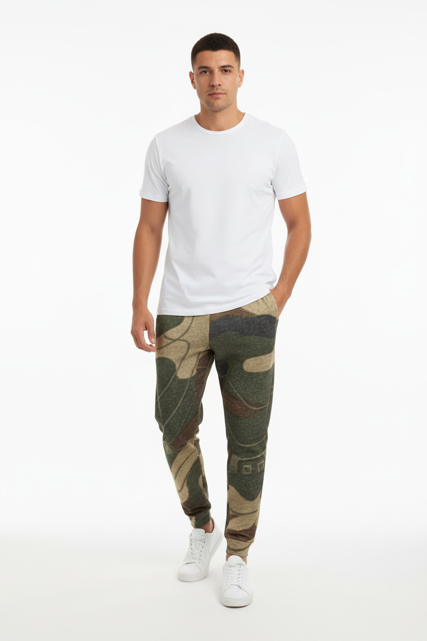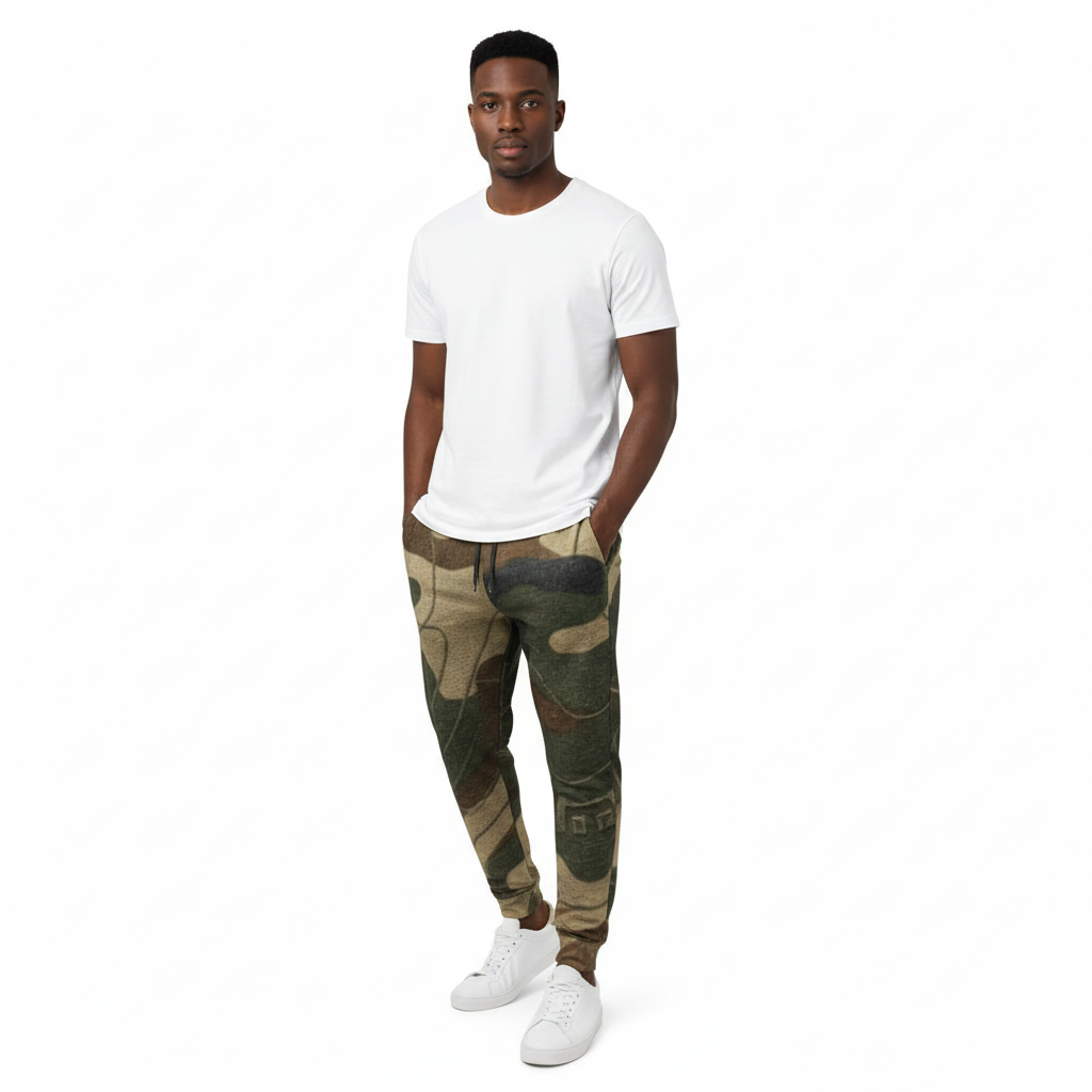 Redefine casual comfort with these abstract camo joggers featuring a unique artistic camouflage pattern in earthy olive, tan, and brown tones. This modern take on traditional camo combines organic shapes with geometric elements for a sophisticated streetwear aesthetic that stands out from the crowd.