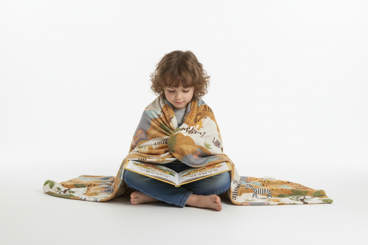 Transform bedtime into an exciting safari adventure with this ultra-soft sherpa blanket featuring playful elephants, giraffes, zebras, lions, and monkeys in a warm savanna landscape. Perfect for little explorers who dream of wild adventures!