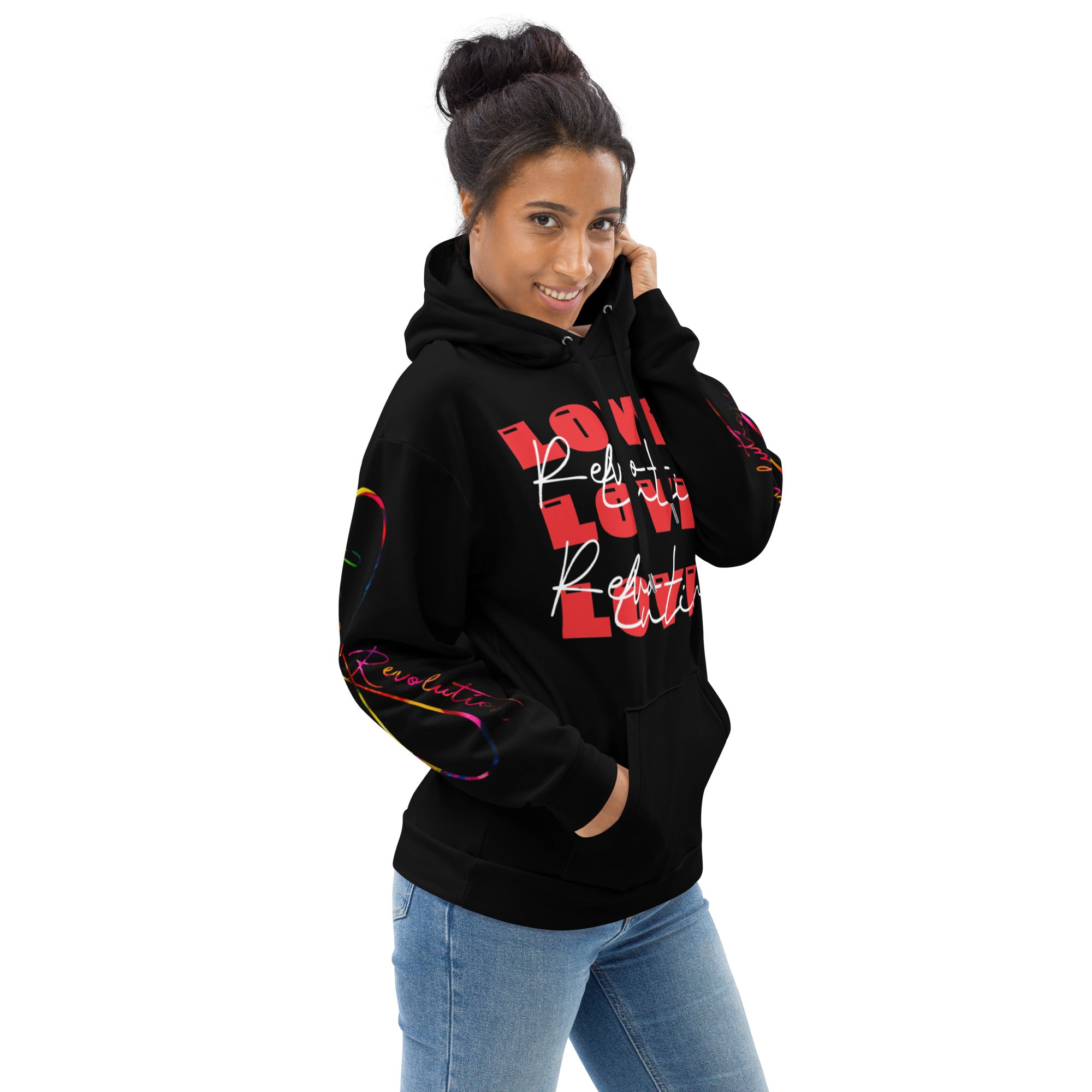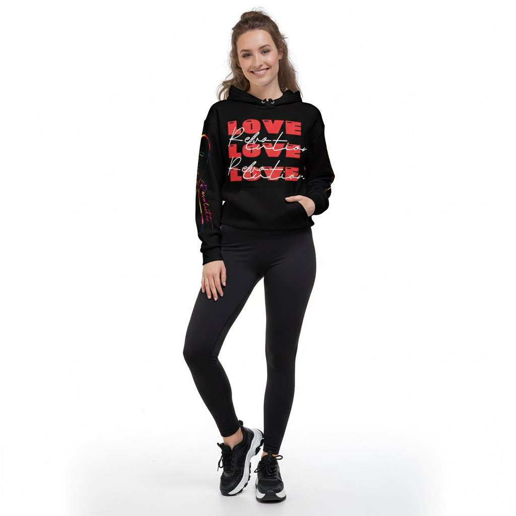 Wear your heart on your sleeve—and everywhere else—with the Love Revolution Hoodie. This all-over print design features bold love-inspired graphics, hand-drawn hearts, and empowering script that celebrates connection, compassion, and the power of positive energy.
