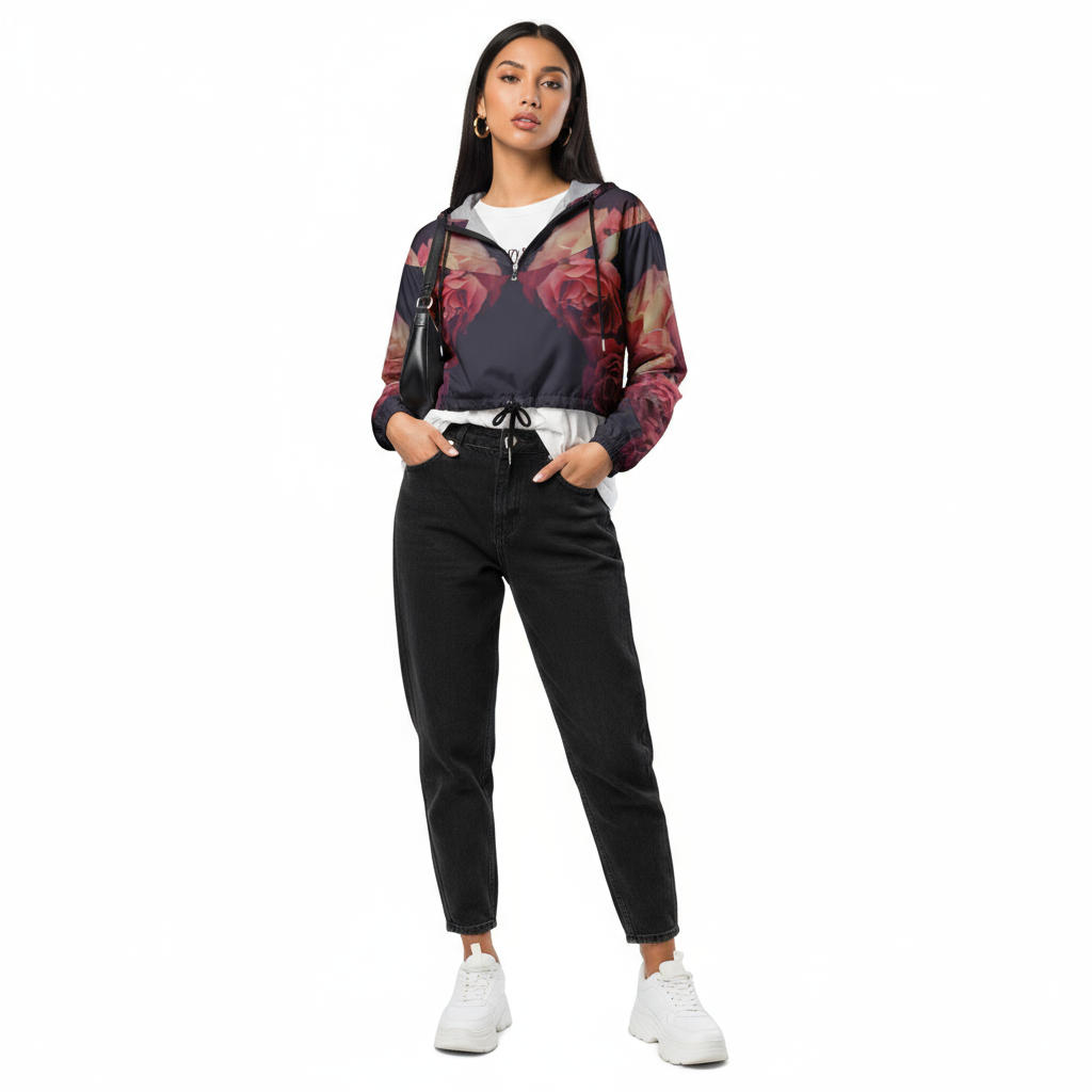 Step into your own secret garden with this stunning floral cropped windbreaker that turns heads wherever you go. The vibrant botanical print brings a fresh, feminine energy to your outdoor wardrobe, while the performance features keep you protected from whatever Mother Nature has in store.