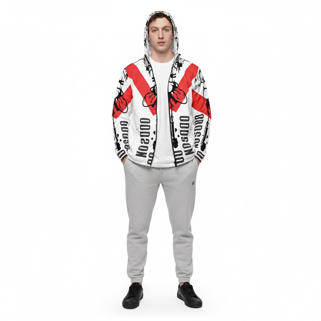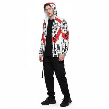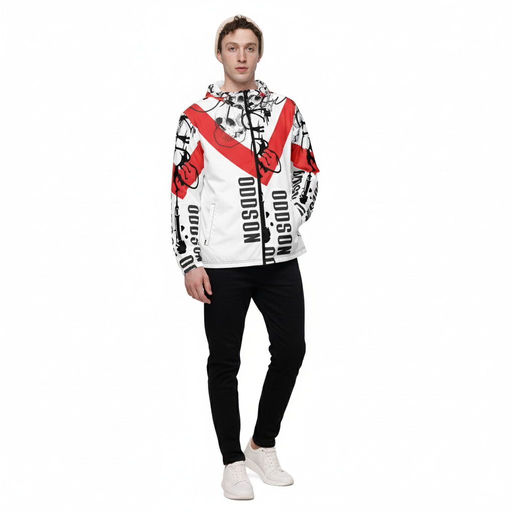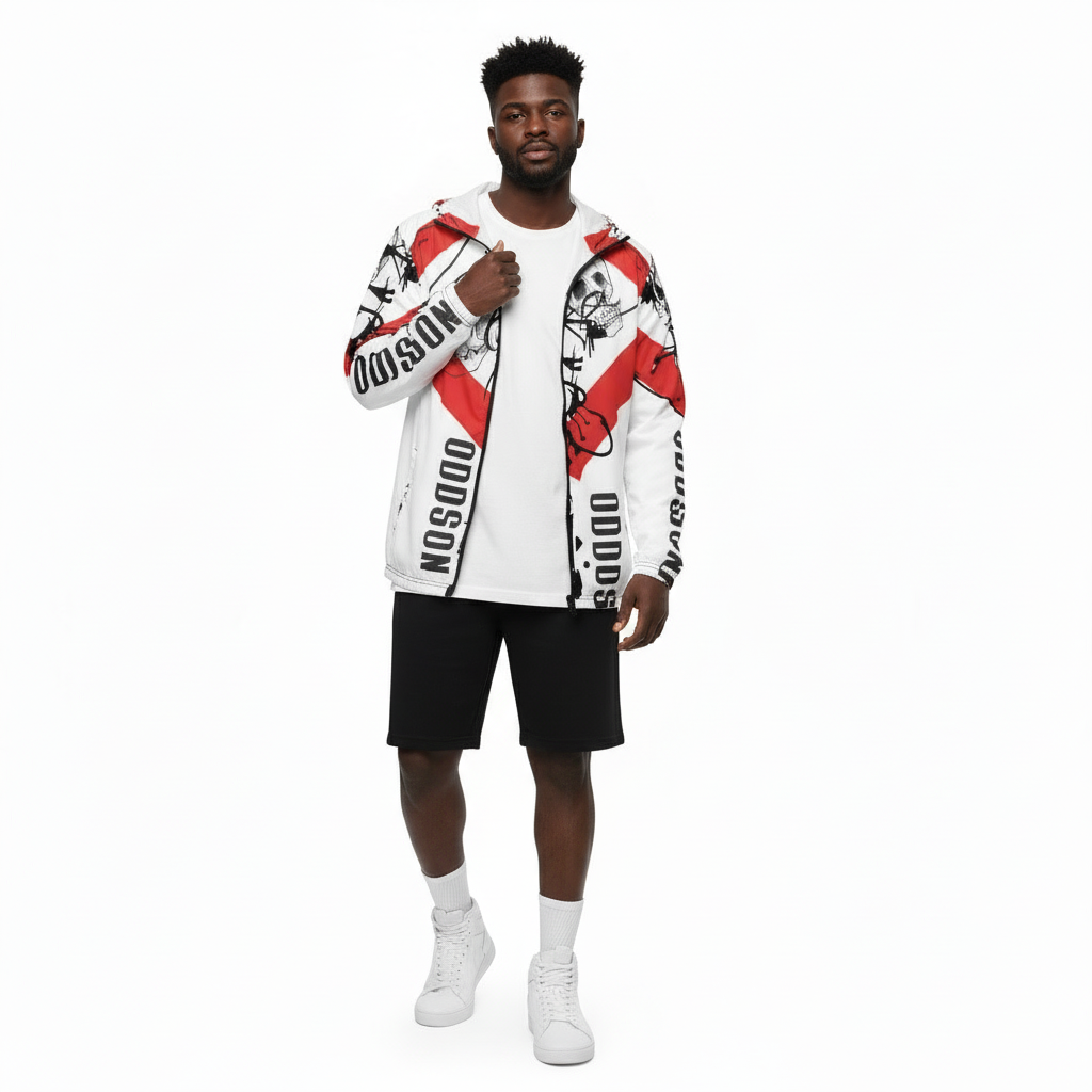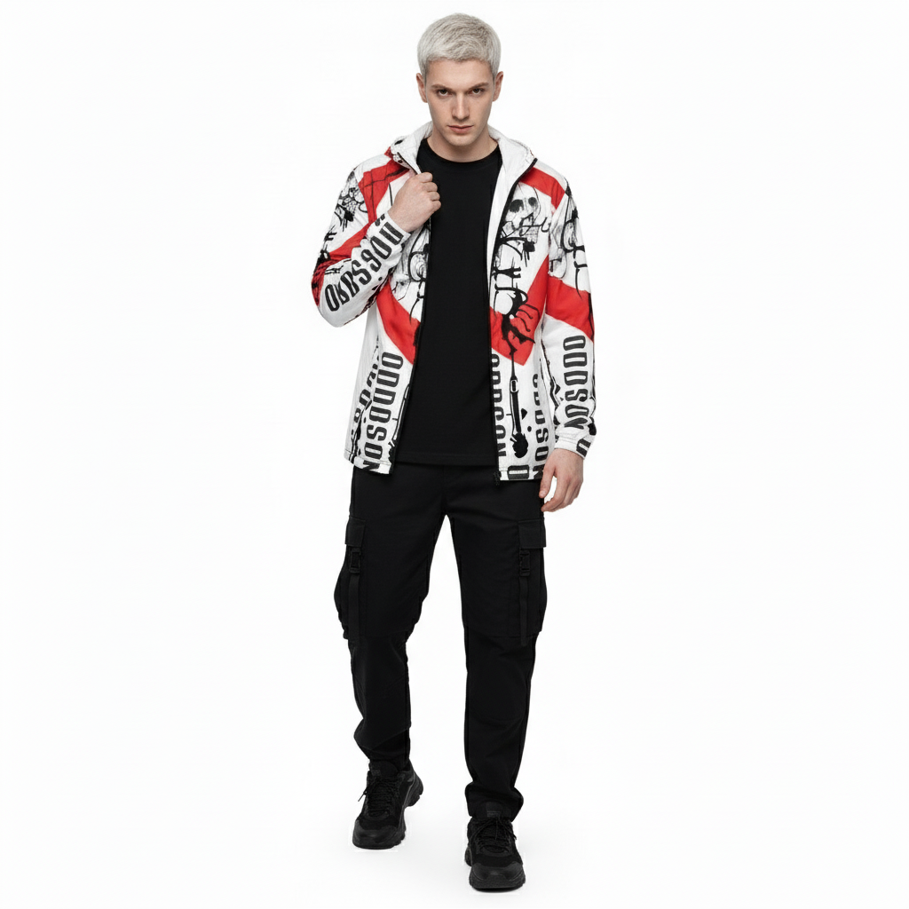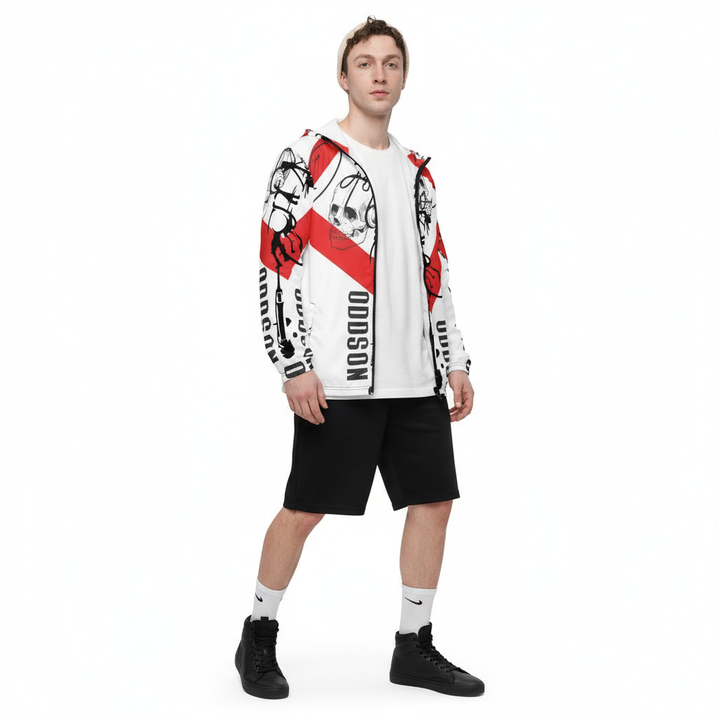 The Sobori-Above Influence Windbreaker (From the 2026 Oddson Sobori collection) is designed for those who refuse to blend in. Featuring bold red diagonal stripes, striking skull illustrations, and graphic "ODD SON" text, this water-resistant, lightweight jacket commands attention wherever you go.