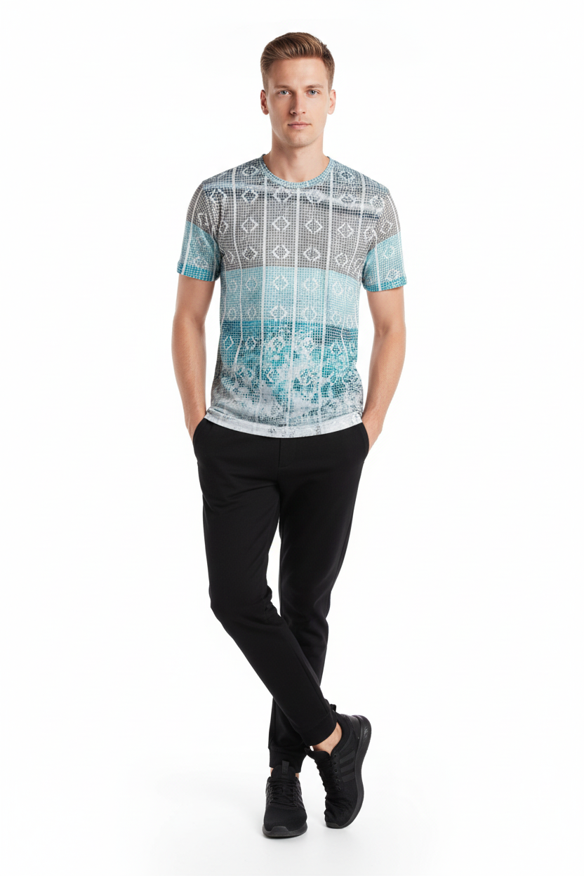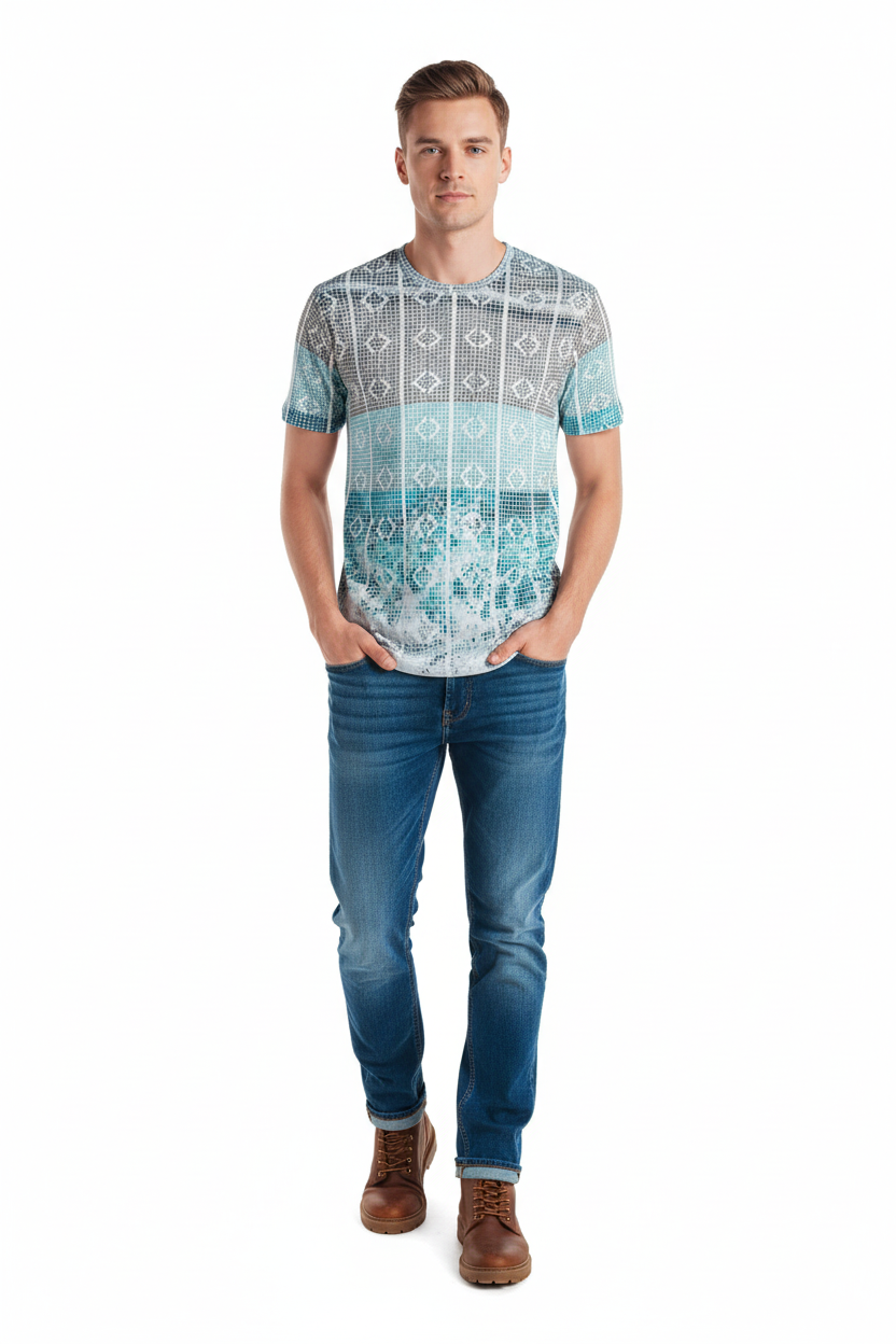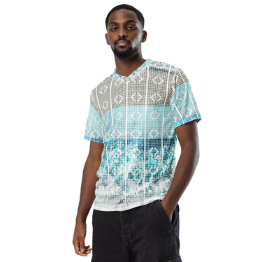 Make waves with this striking gradient mosaic sports jersey featuring a modern digital pattern that transitions from cool gray to vibrant turquoise. The contemporary geometric design creates a dynamic visual effect that stands out whether you're hitting the beach, the gym, or the streets.