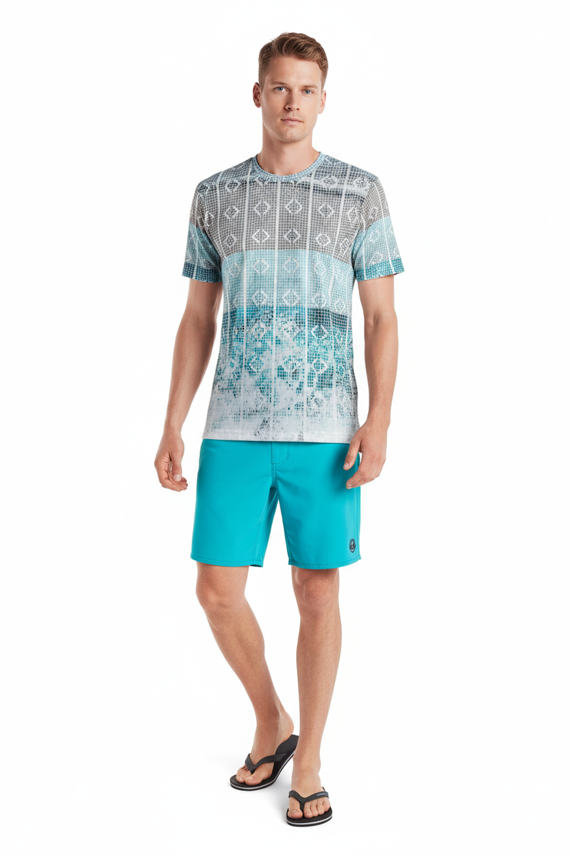 This versatile jersey transitions seamlessly from workout to weekend, pairing perfectly with boardshorts for beach days, joggers for athleisure looks, or jeans for casual streetwear. The modern digital print adds a contemporary edge to your wardrobe while the eco-friendly construction aligns with sustainable values.
