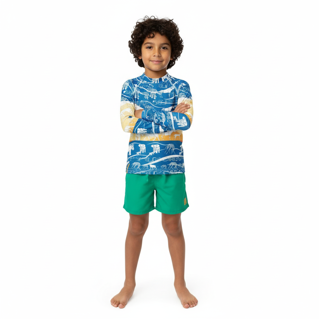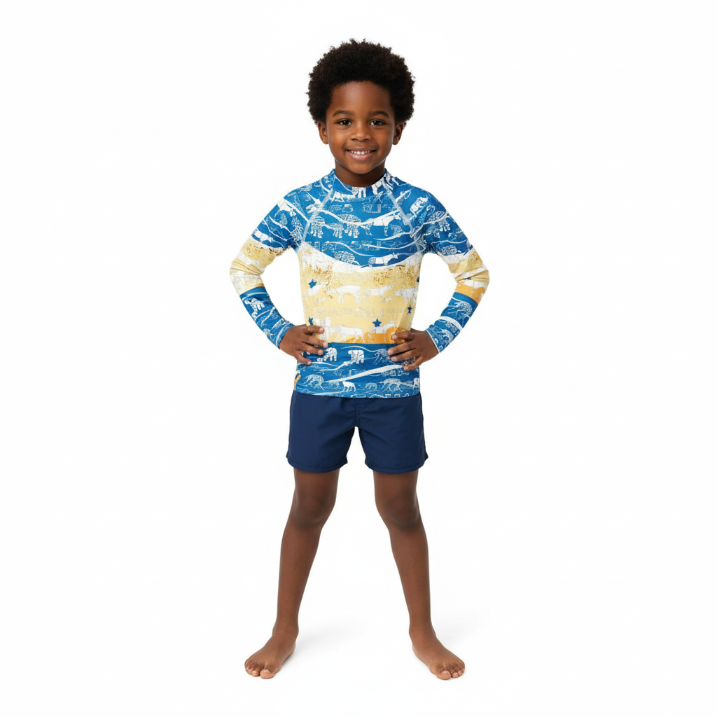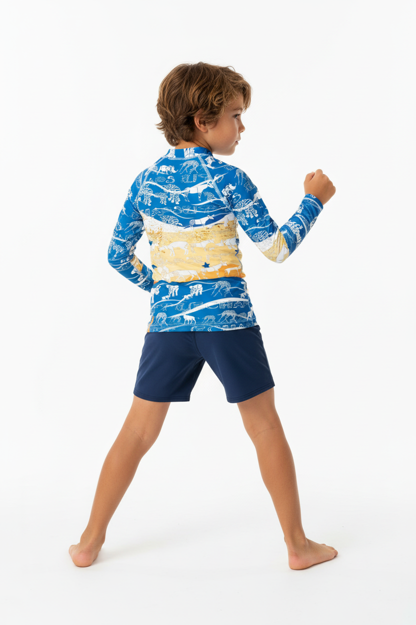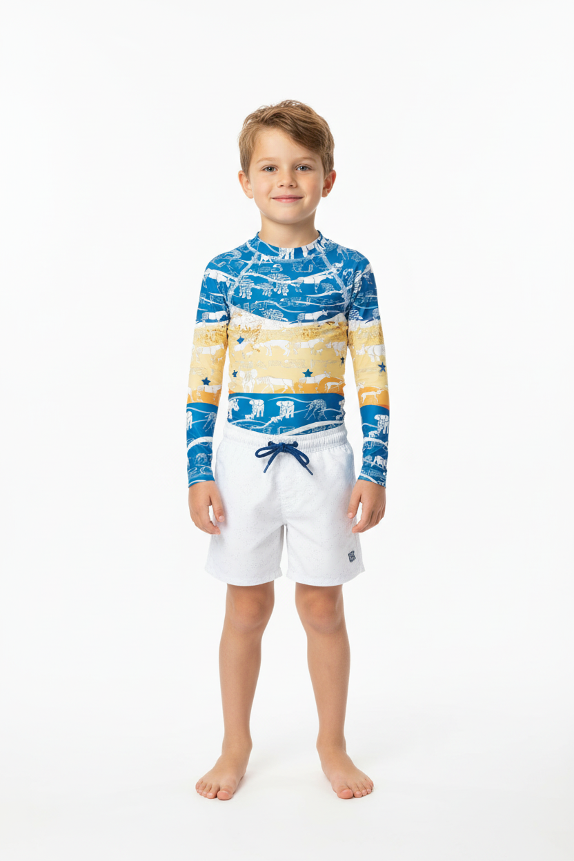 Whether they're exploring the playground, hitting the beach, or embarking on road trips and travels, this rash guard is the perfect companion. It's streetstyle meets function—designed for the young adventurers who are always on the move.