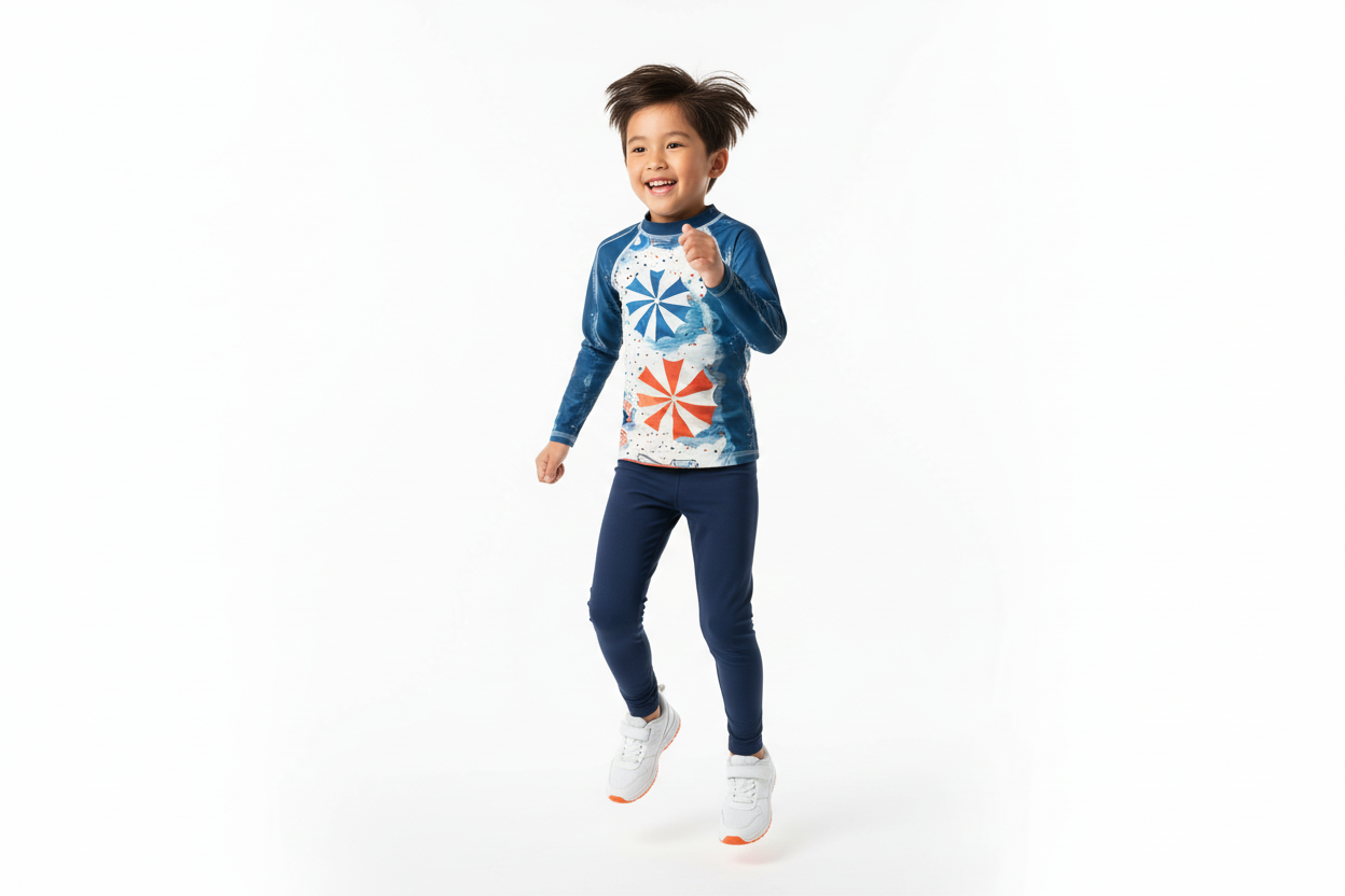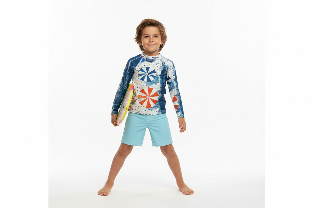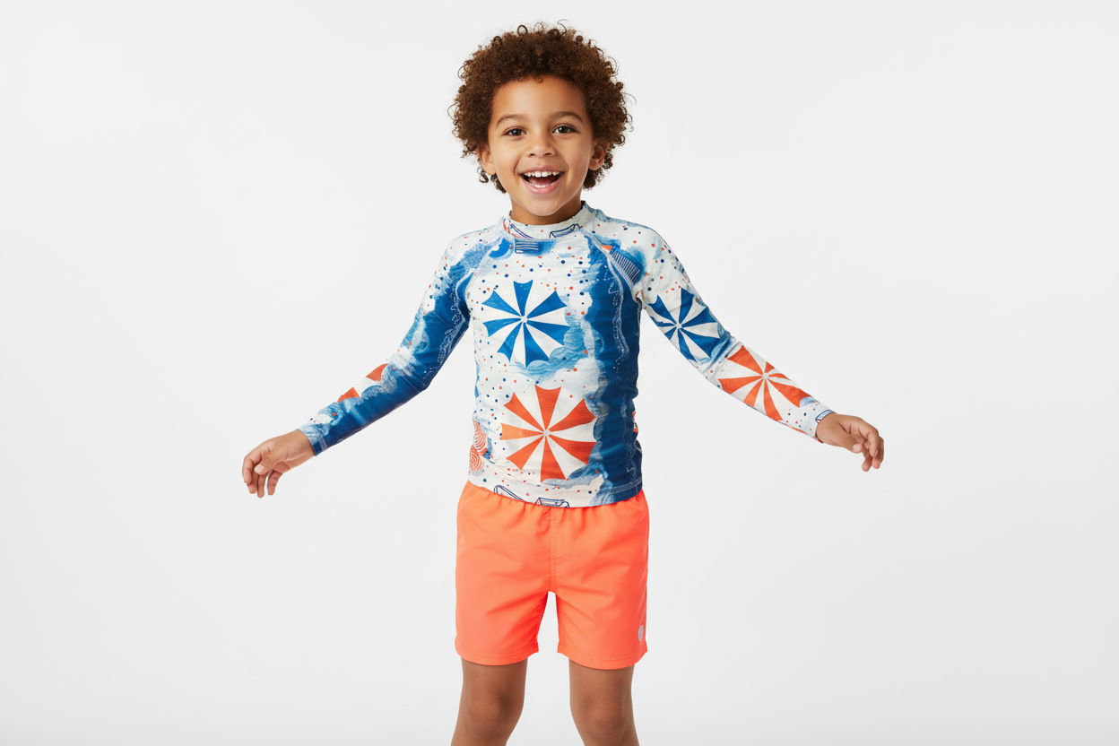 - Sun-protective fabric with long body & sleeves – Extended coverage to keep kids protected during sunny days