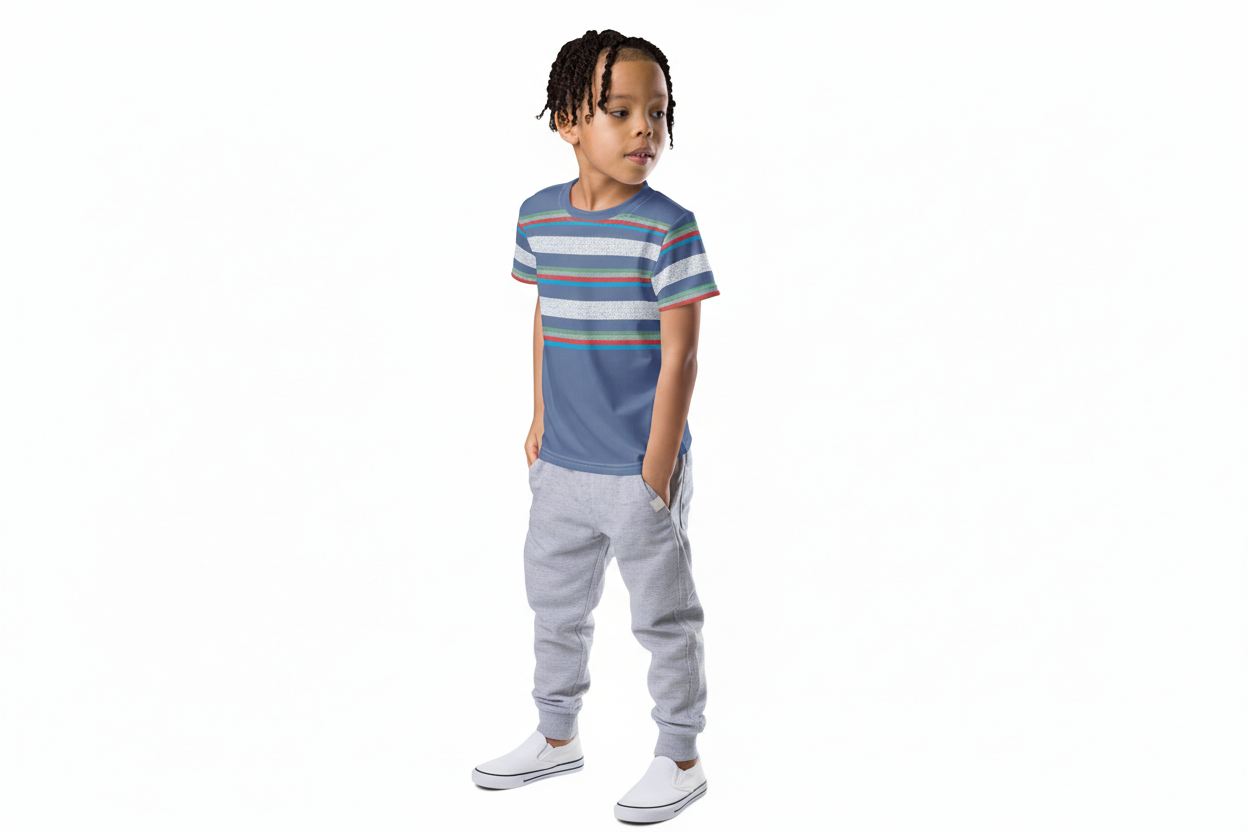 Bring vibrant energy to your child's wardrobe with the LITTLEcHAPS Kids Crew Neck T-shirt- Coastal Stripe! This eye-catching tee features bold, colorful stripes that capture the fun and carefree spirit of coastal living.