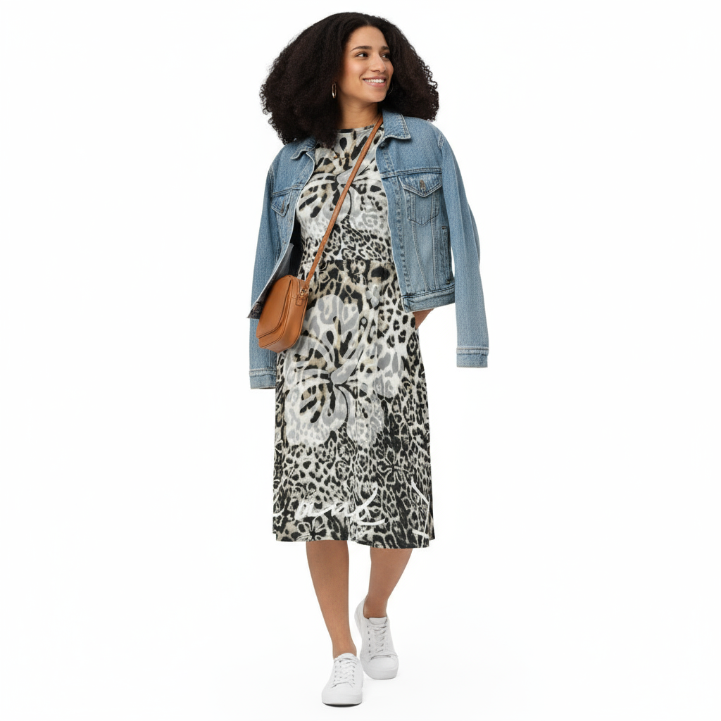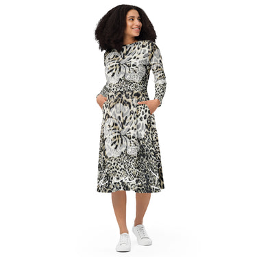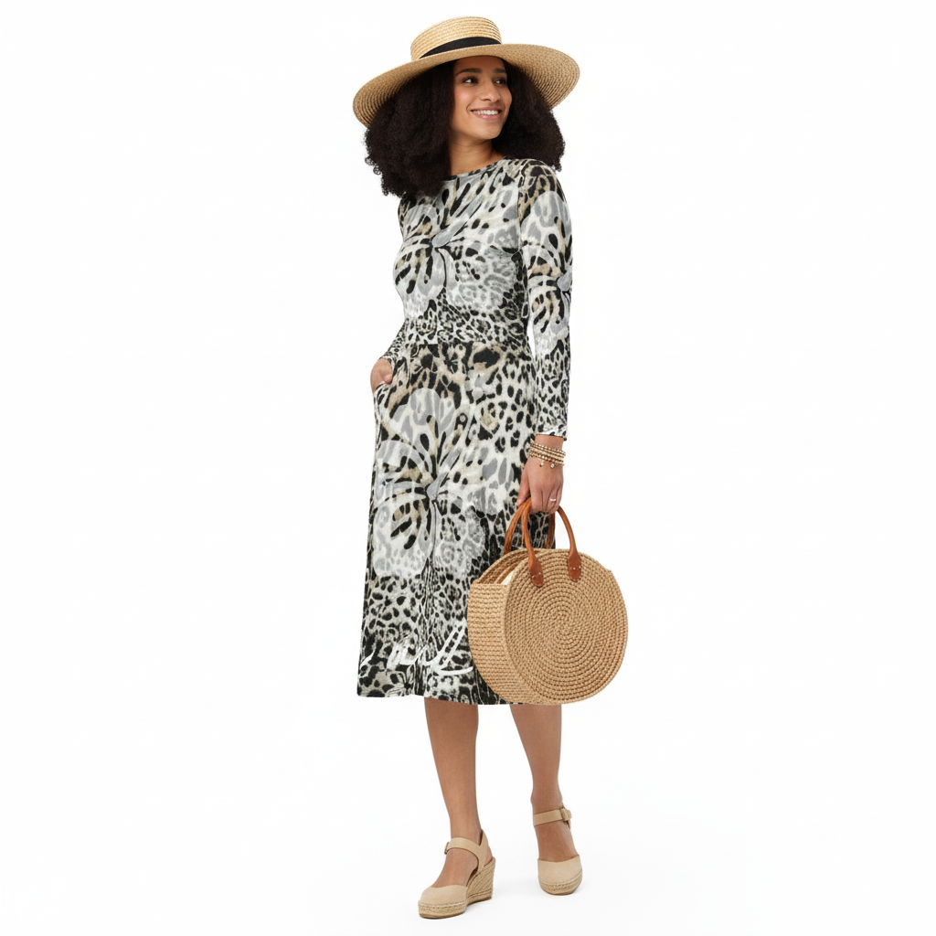 Embrace effortless style with the Wild and Free long sleeve midi dress – a statement piece that brings bold, artistic prints to your everyday wardrobe.
