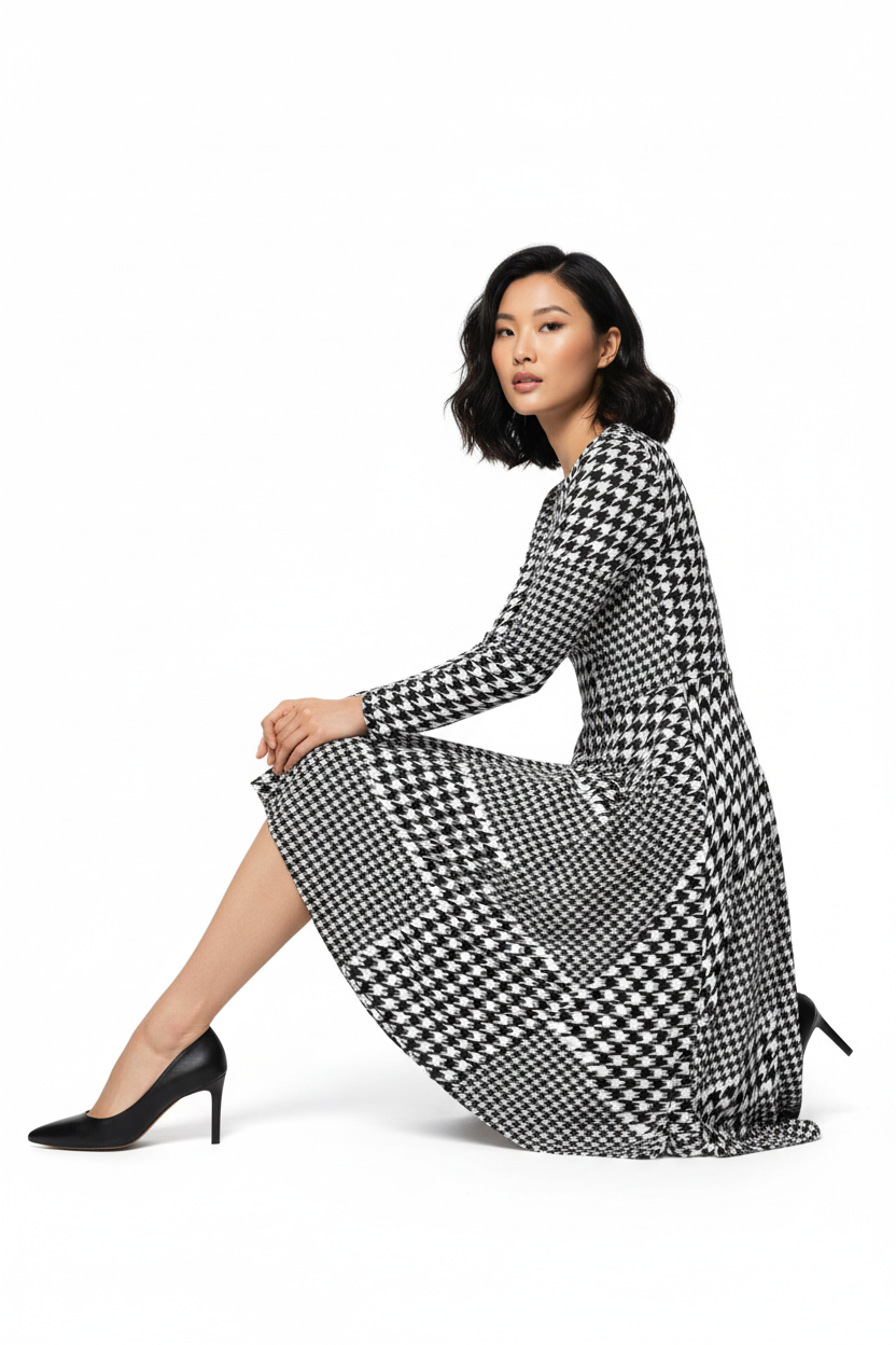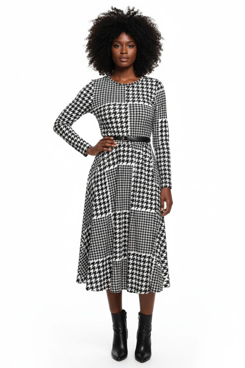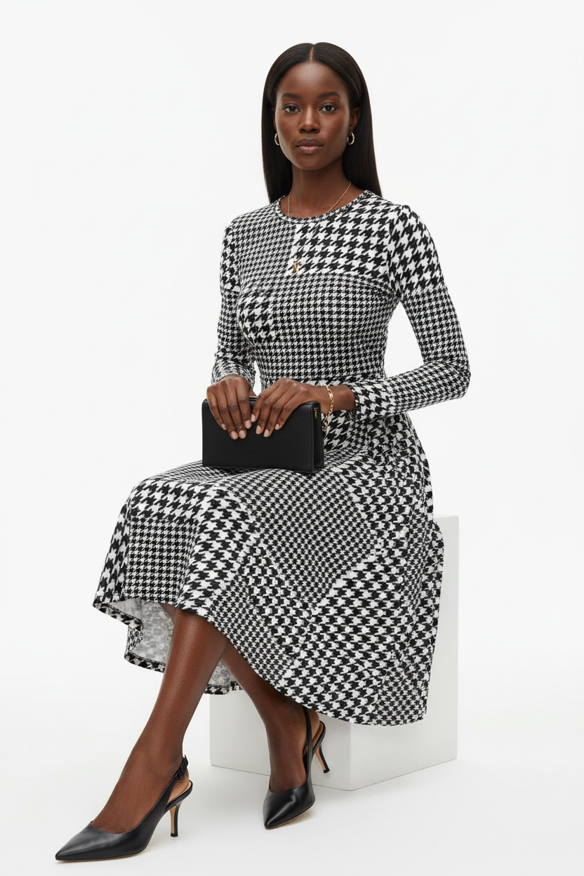 Take a chance on effortless style with this stunning Timeless Check Midi Dress—a bold choice that pays off every time. Designed for the confident woman who values both comfort and sophistication, this dress delivers a flattering silhouette that moves beautifully from day to night.