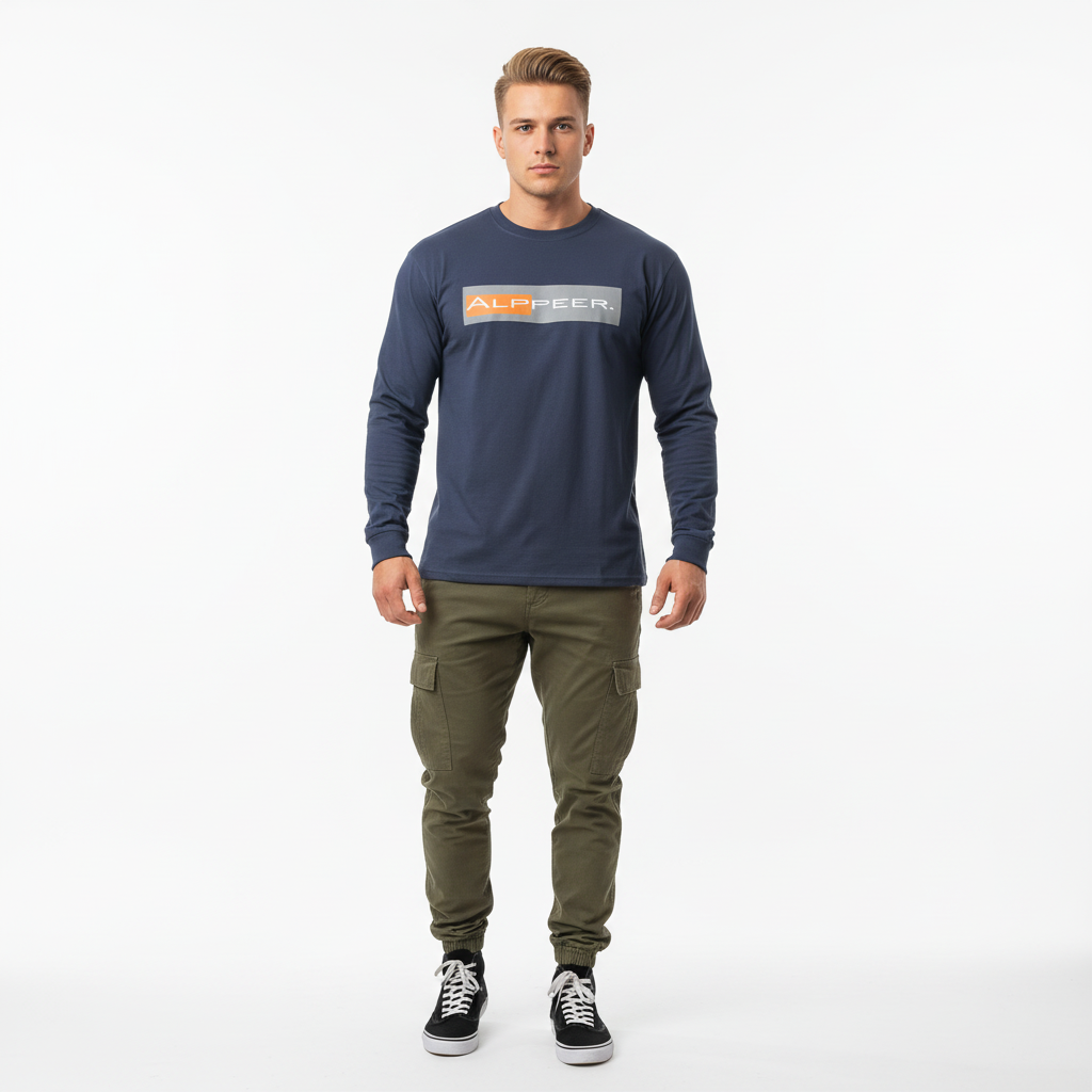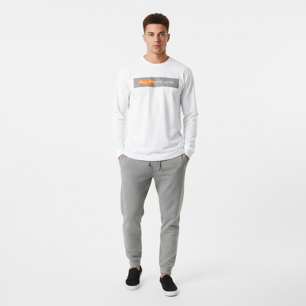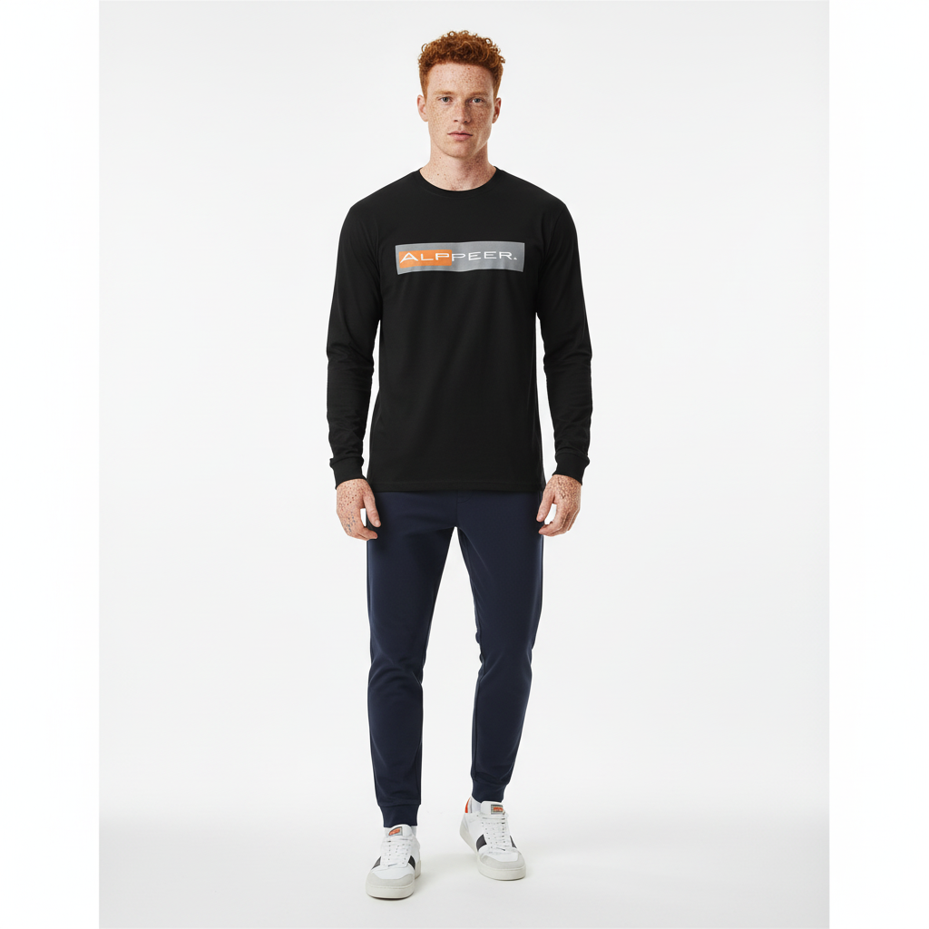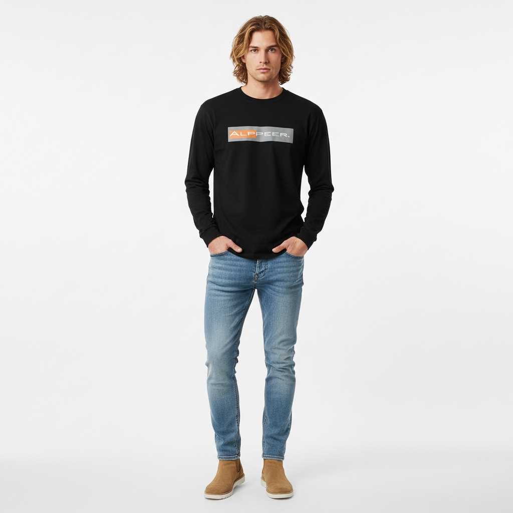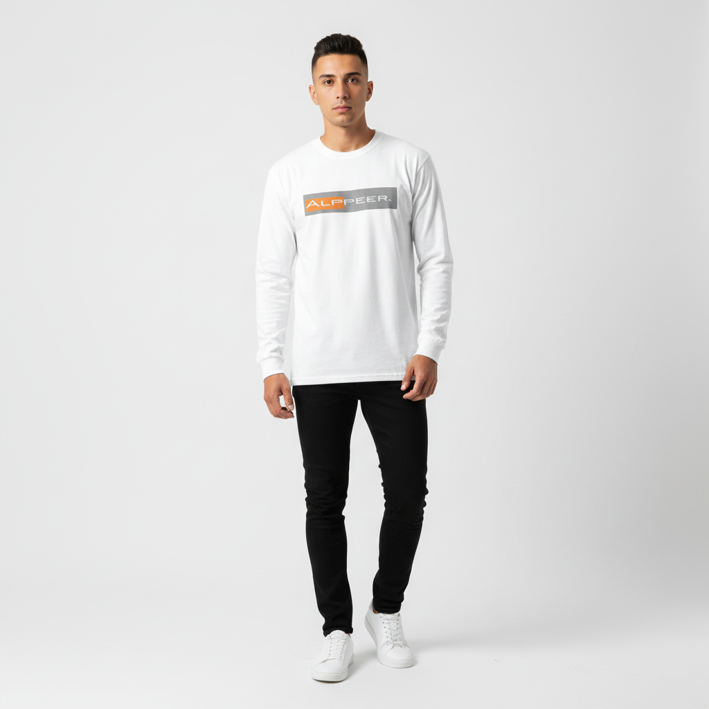 - Bold Alppeer horizontal bar logo across chest