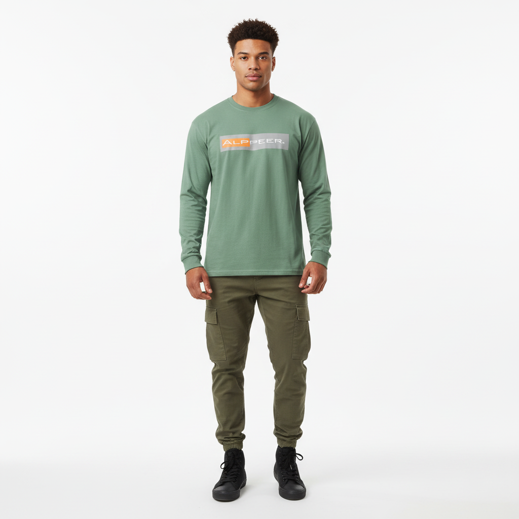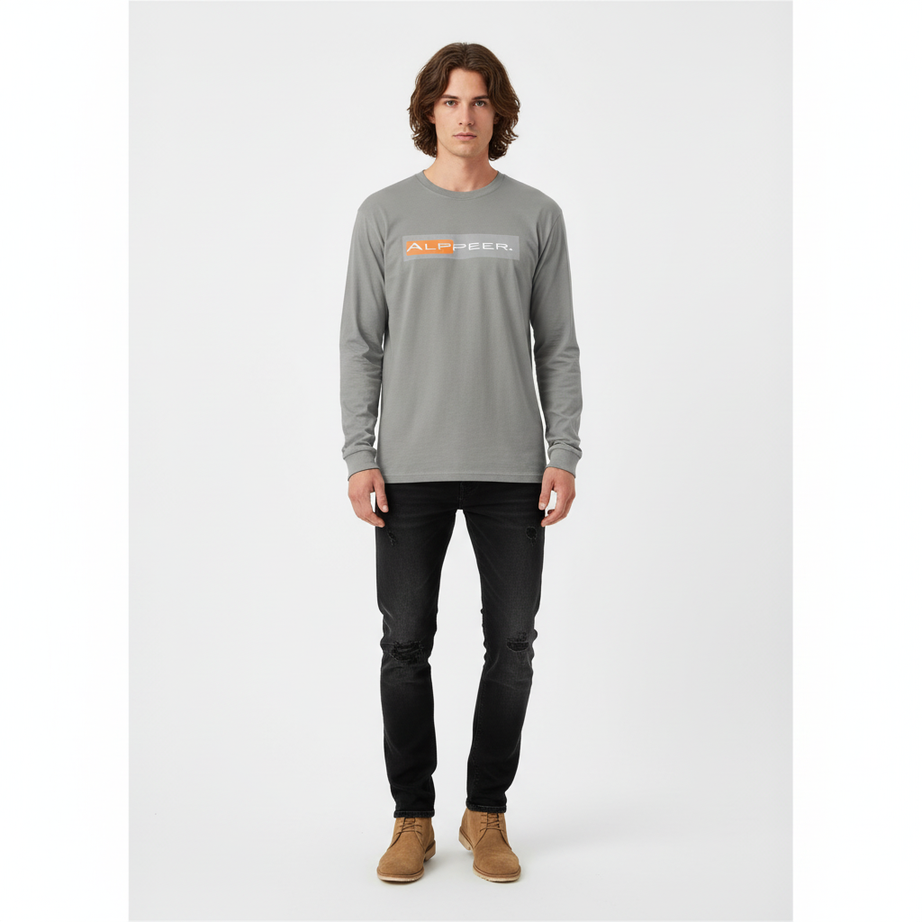 Represent the brand with the Alppeer Garment-Dyed Heavyweight Long Sleeve Shirt. Featuring our signature horizontal bar logo in bold orange and gray, this premium heavyweight tee delivers superior comfort and durability with a garment-dyed finish for a lived-in feel.