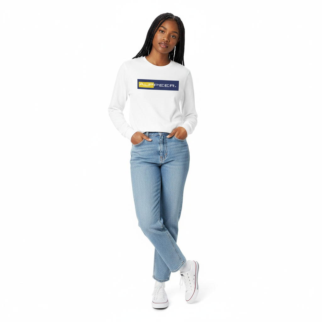 Elevate your everyday wardrobe with this clean, minimalist long-sleeve tee featuring the iconic Alppeer logo. The bold navy and yellow horizontal graphic creates a striking visual statement while maintaining versatile wearability across any style.