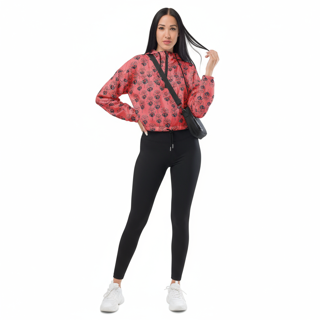 Made from premium 100% polyester with a breathable mesh lining, this windbreaker offers superior comfort while reducing static cling. The water-resistant fabric shields you from unpredictable weather, while the modern cropped cut creates a flattering, contemporary silhouette that pairs perfectly with high-waisted bottoms.
