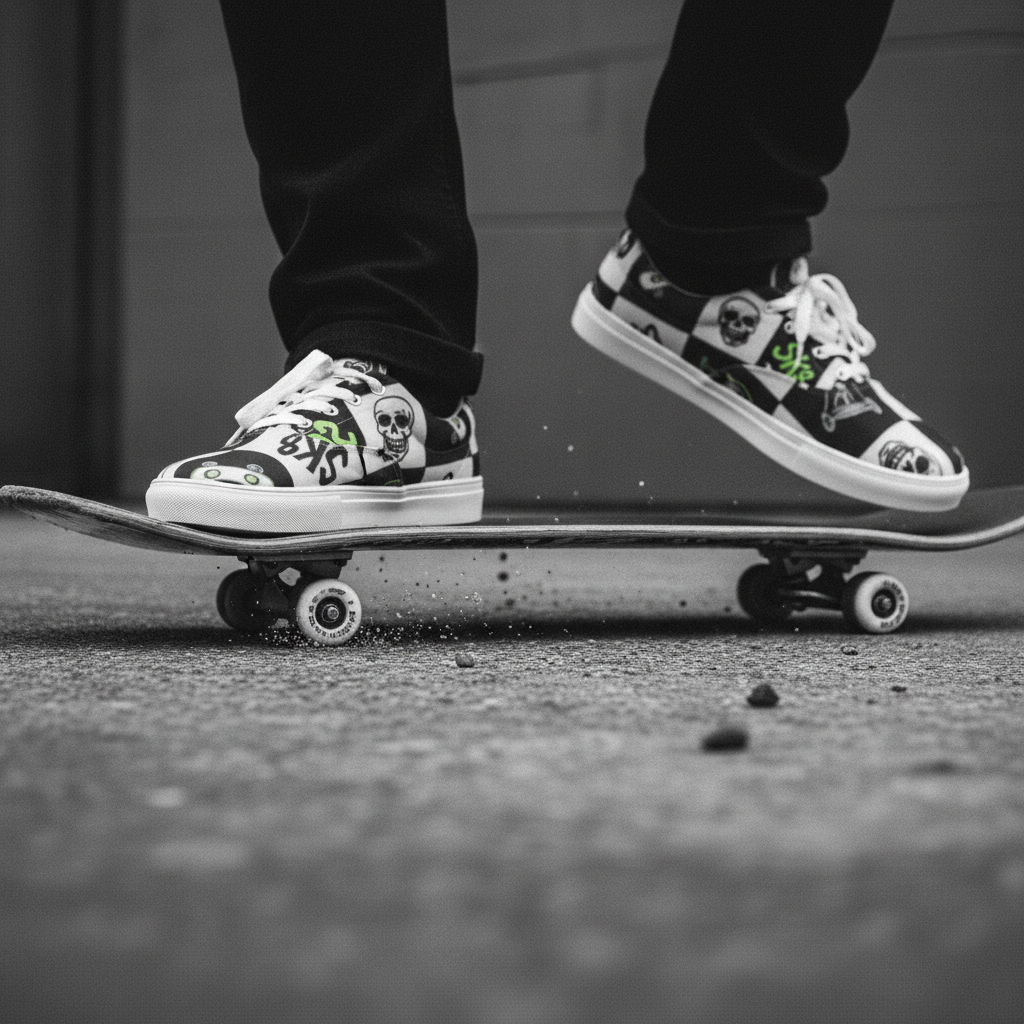 - Head-turning design: Bold checkered pattern with skull graphics and skateboard motifs for maximum street cred