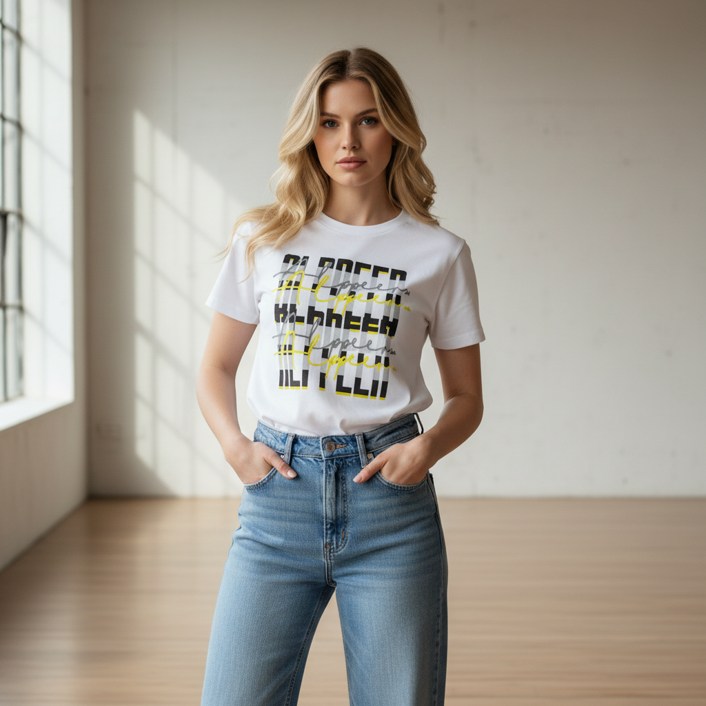 The Alppeer Signed series t-shirt features a striking geometric graphic that layers bold typography with vibrant yellow accents and subtle script overlays. This isn't just a tee—it's wearable art that commands attention whether you're hitting the streets, the skatepark, or the city.