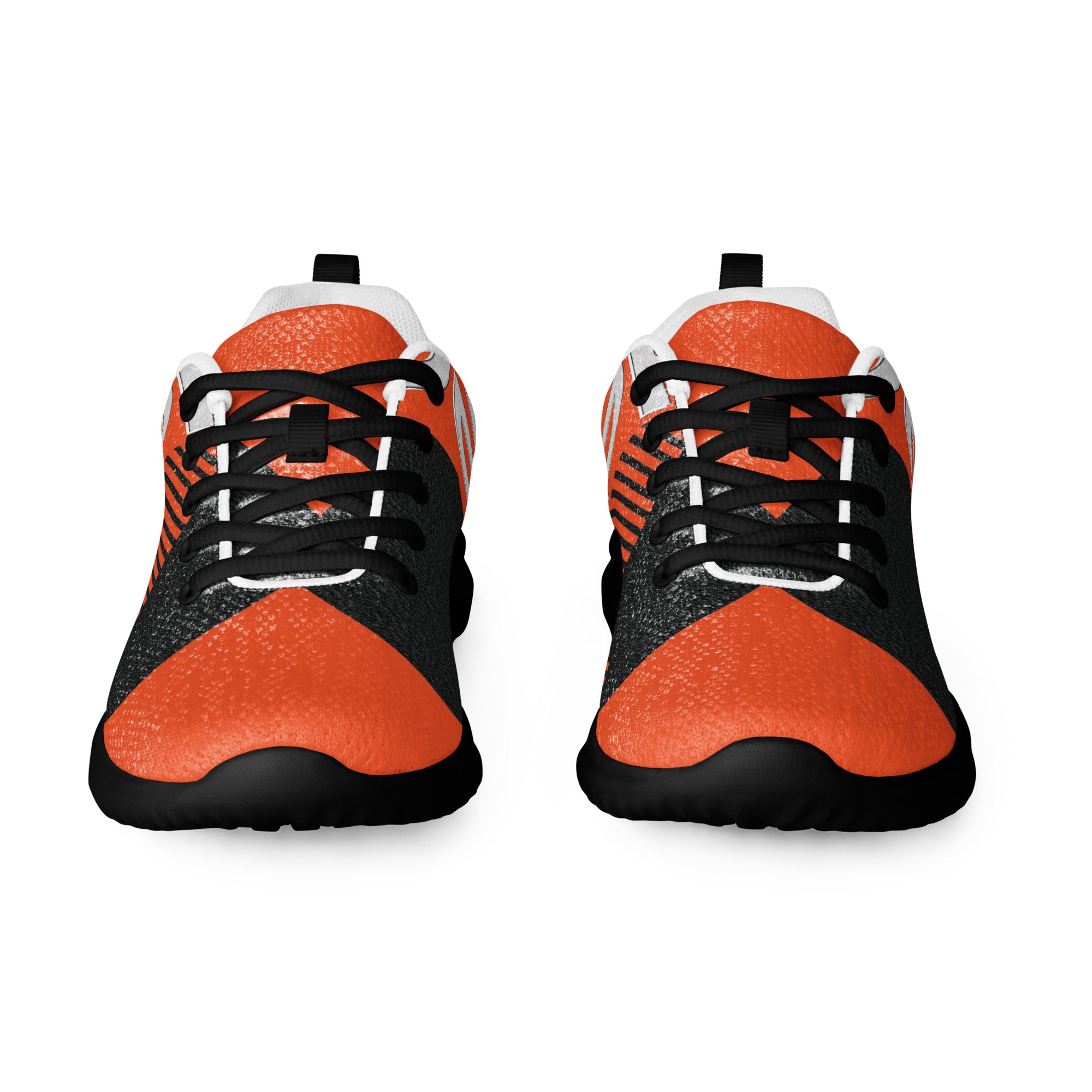 - Fiery Orange Design – Eye-catching orange/coral accents create maximum visual impact and energetic athletic style