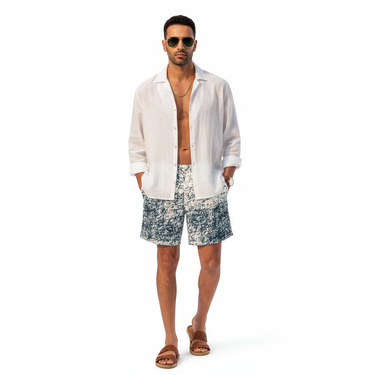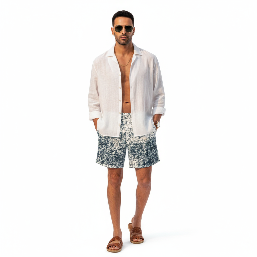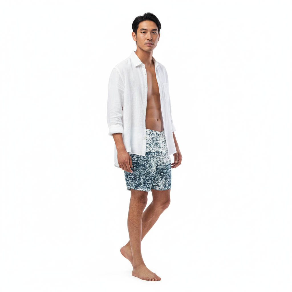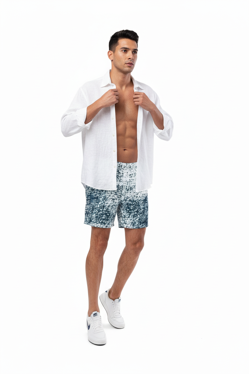 The sophisticated speckled pattern creates a refined look that transitions seamlessly from beach to resort to casual outings. These swim trunks work equally well for swimming, sports, or stylish athleisure looks. Pair them with a white tee for casual vibes, layer with an open linen shirt for resort elegance, or wear solo to showcase the artistic pattern.