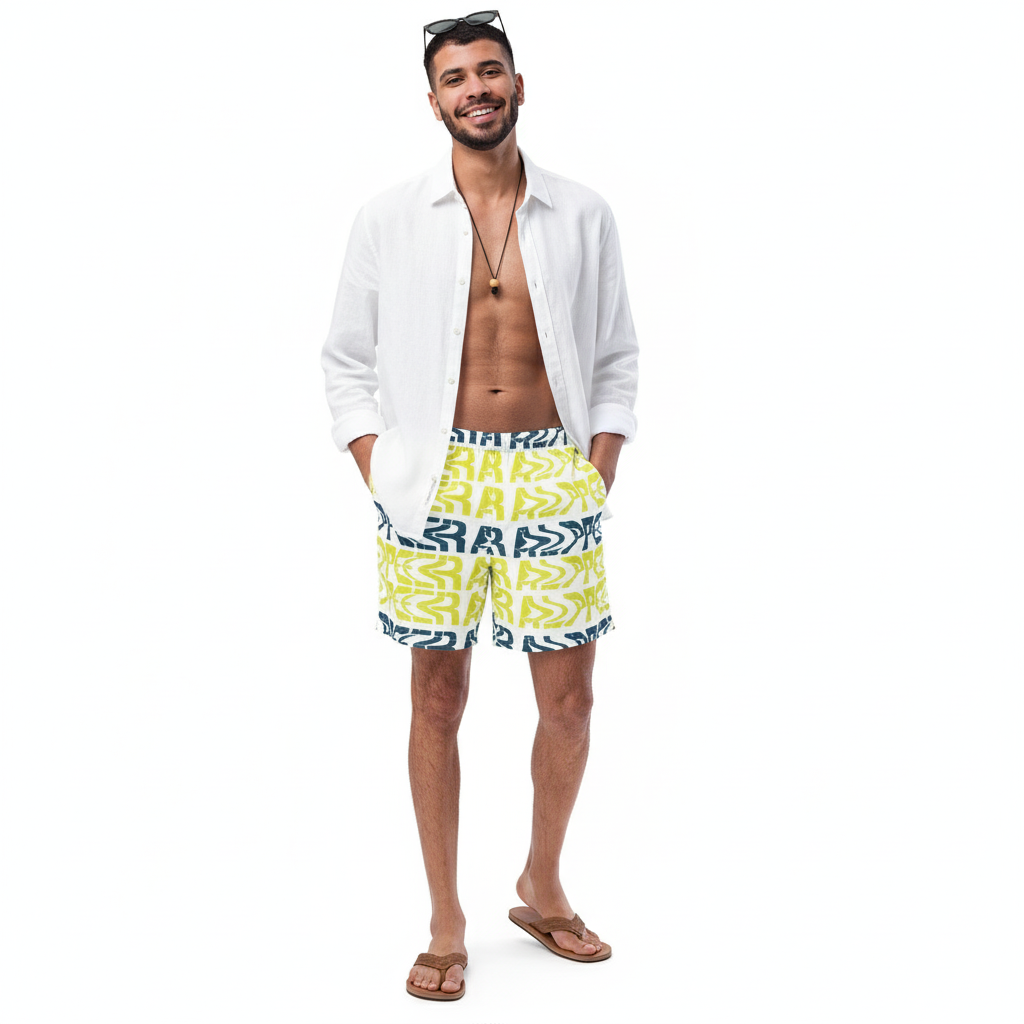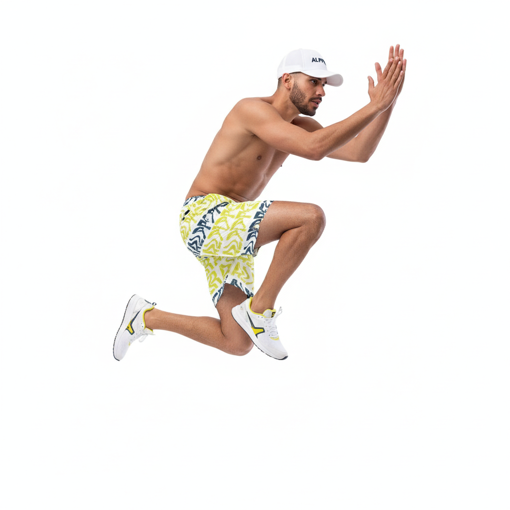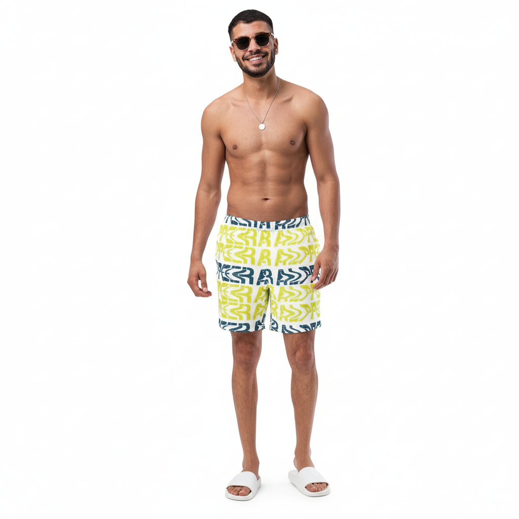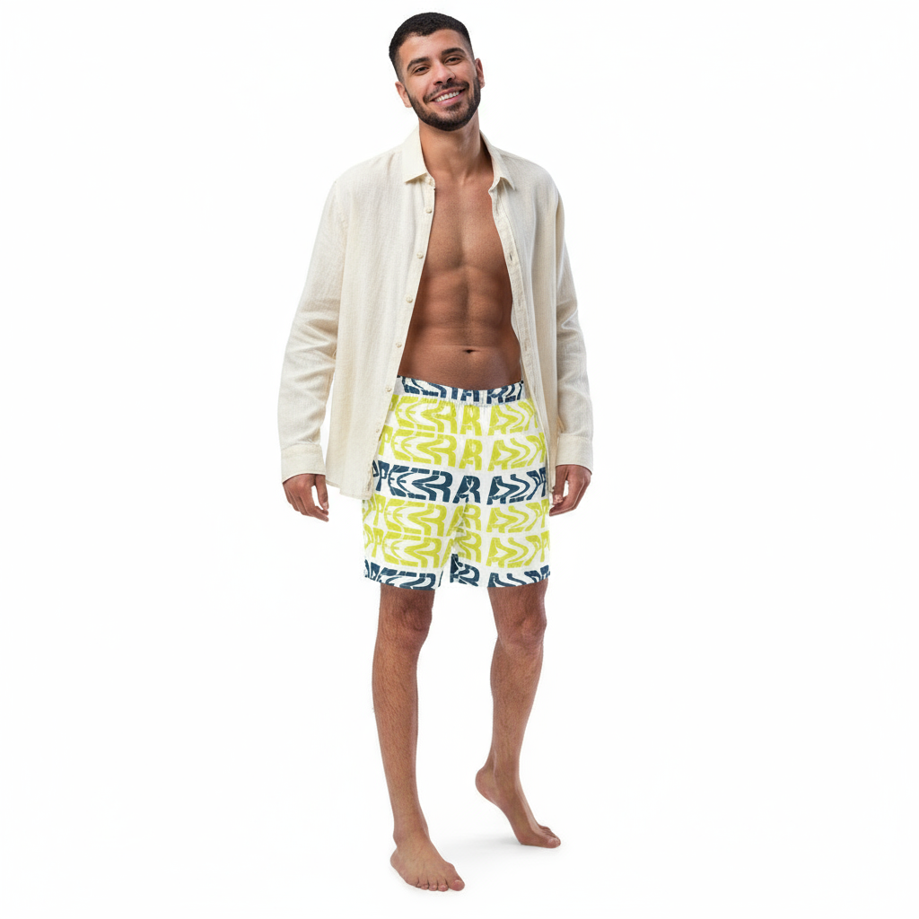 These lightweight swim trunks transition seamlessly from swimming to sports to stylish athleisure looks. Whether you're catching waves, playing beach volleyball, or relaxing poolside, the bold yellow and navy pattern ensures you stand out while staying comfortable.