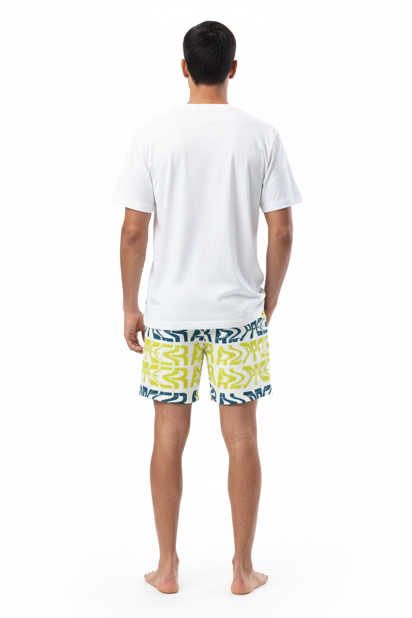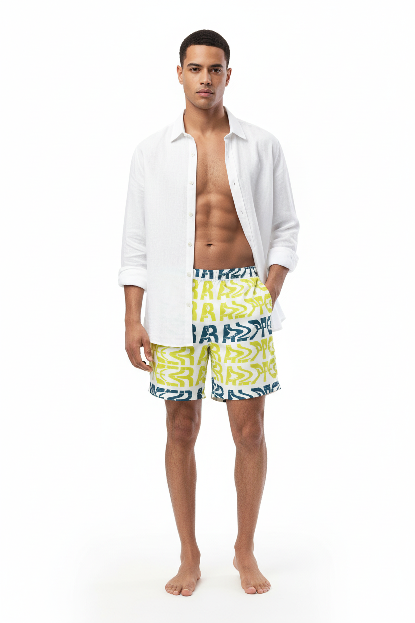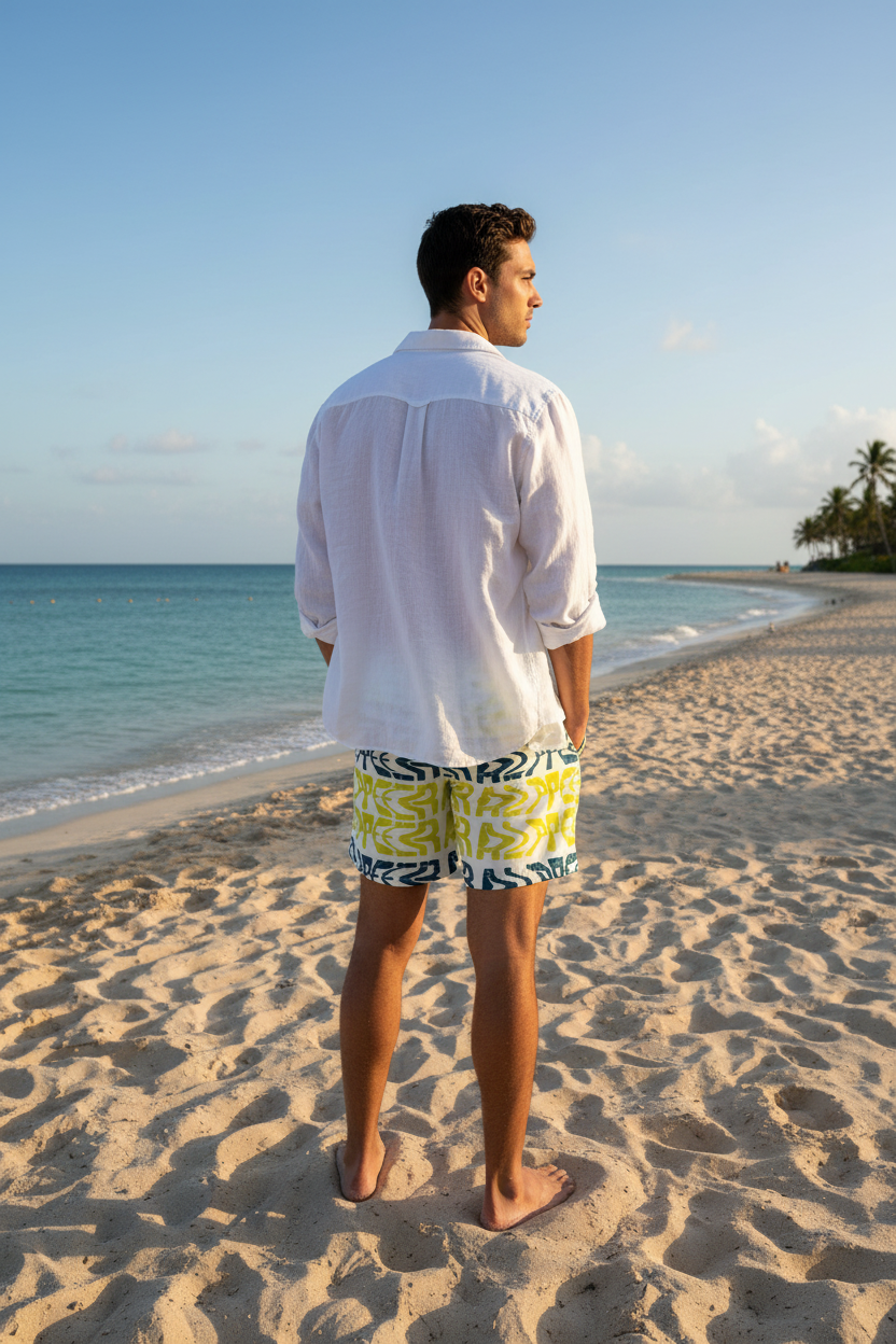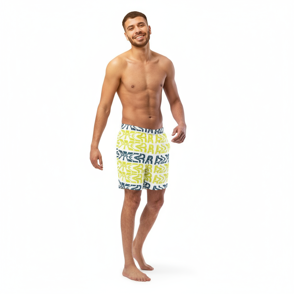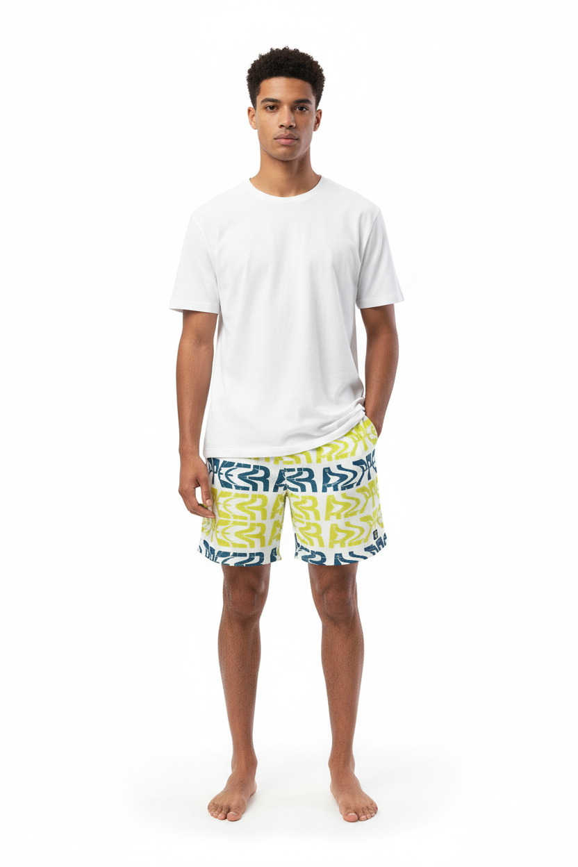 These lightweight swim trunks transition seamlessly from swimming to sports to stylish athleisure looks. Whether you're catching waves, playing beach volleyball, or relaxing poolside, the bold yellow and navy pattern ensures you stand out while staying comfortable.