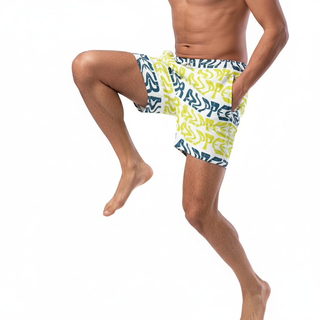 Dive into summer with Alppeer's Foreshore Recycled Swim Trunks, where bold design meets eco-conscious performance. The vibrant yellow and navy pattern makes a statement at the beach, pool, or resort while supporting a sustainable future.