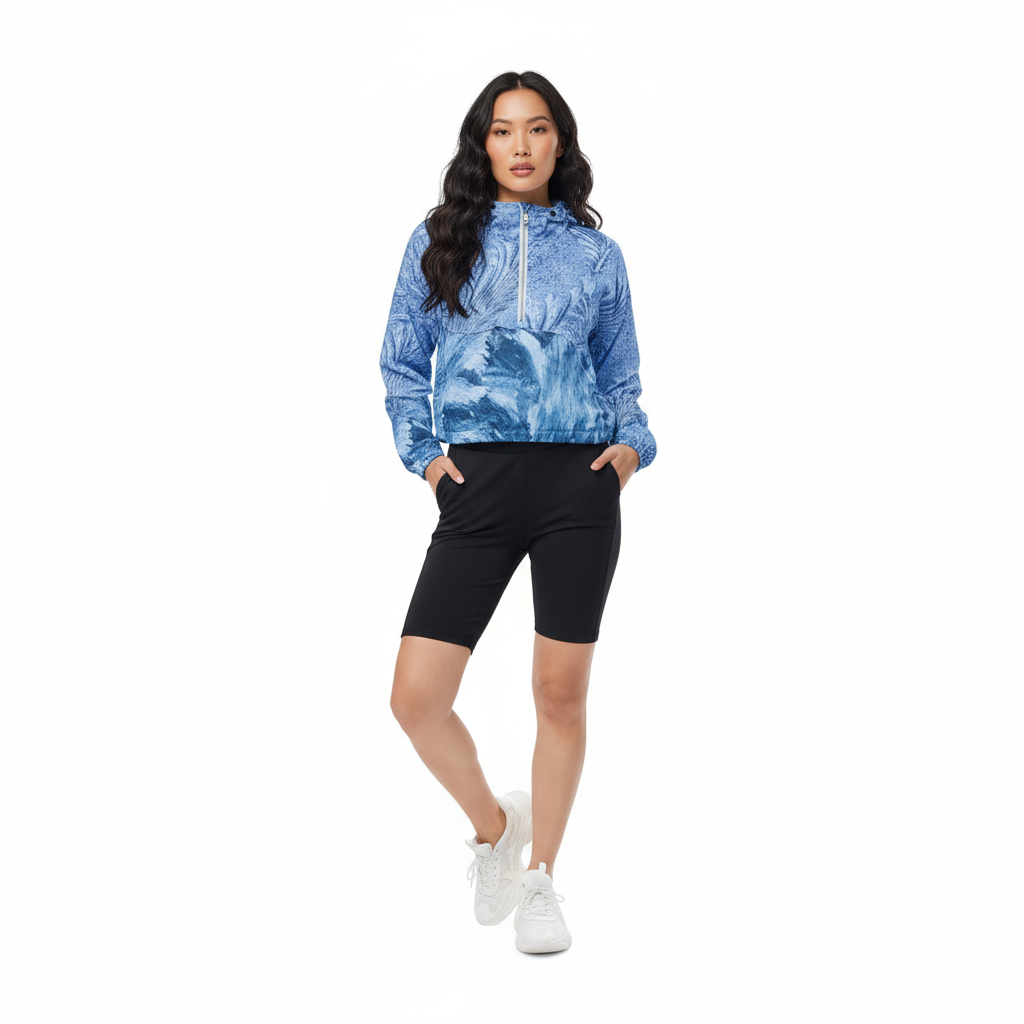 Dive into effortless style with the Prowler Women's Cropped Windbreaker—a stunning piece featuring an ocean-inspired blue wave print that brings coastal energy to your everyday wardrobe. This lightweight jacket combines artistic design with functional performance.