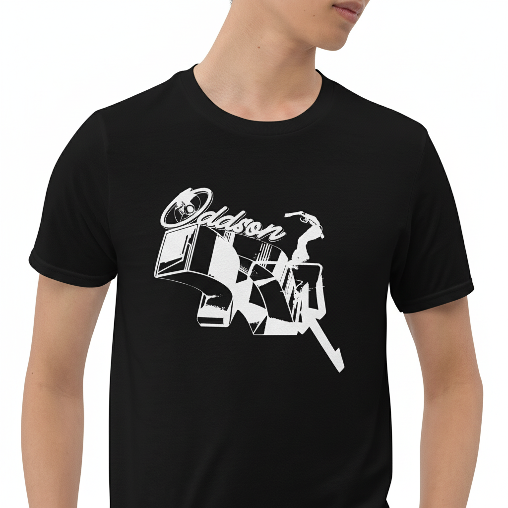 Where music meets motion. The Oddson T-Shirt celebrates the creative collision of DJ culture and skateboarding with an artistic white graphic featuring turntables and skateboarder silhouettes. For those who live at the intersection of beats and boards.