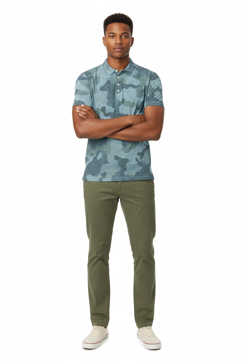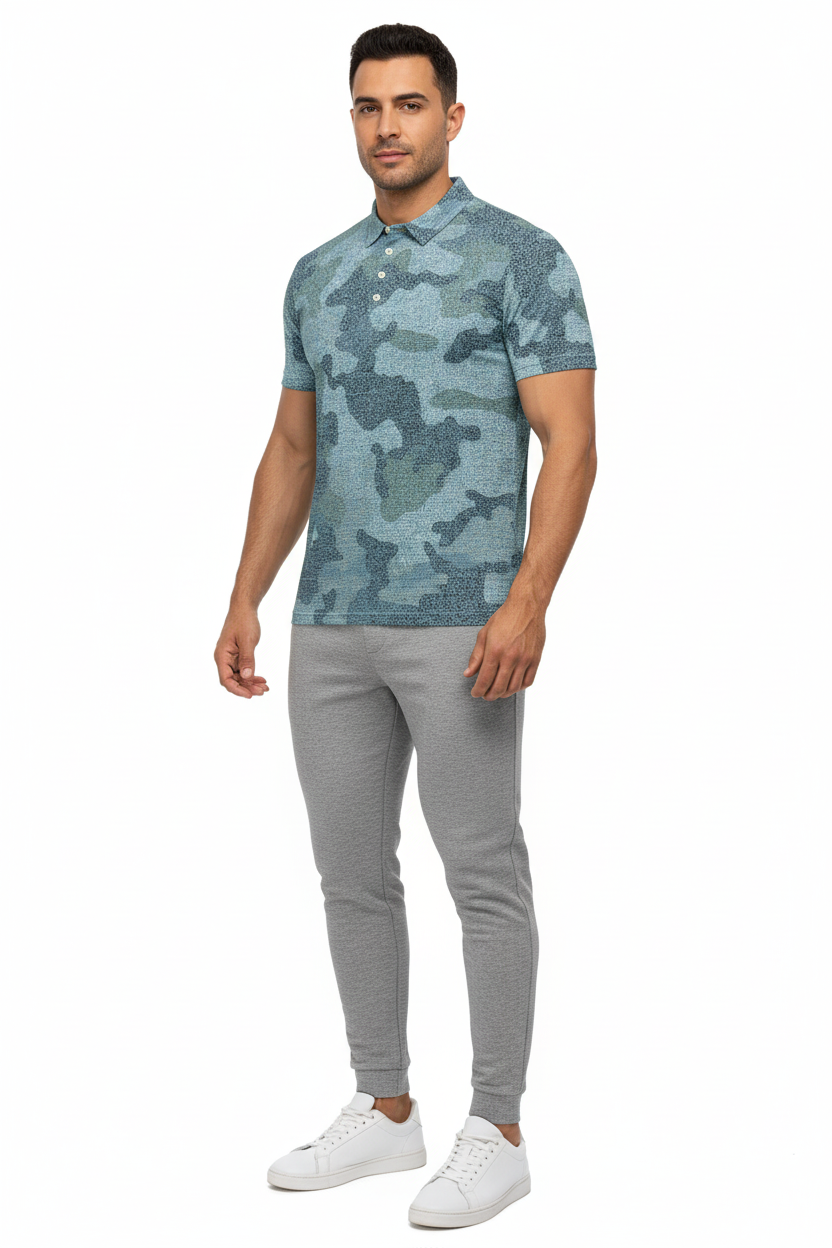 The Blue Tide Camo Performance Polo is where athletic sophistication meets ocean-inspired aesthetics and premium comfort. Featuring the same stunning aqua and teal camouflage pattern as our popular Blue Tide Camo collection, this all-over print slim fit polo delivers exceptional performance, moisture-wicking technology, and eye-catching coastal style that transitions seamlessly from the golf course to the beach club and beyond.