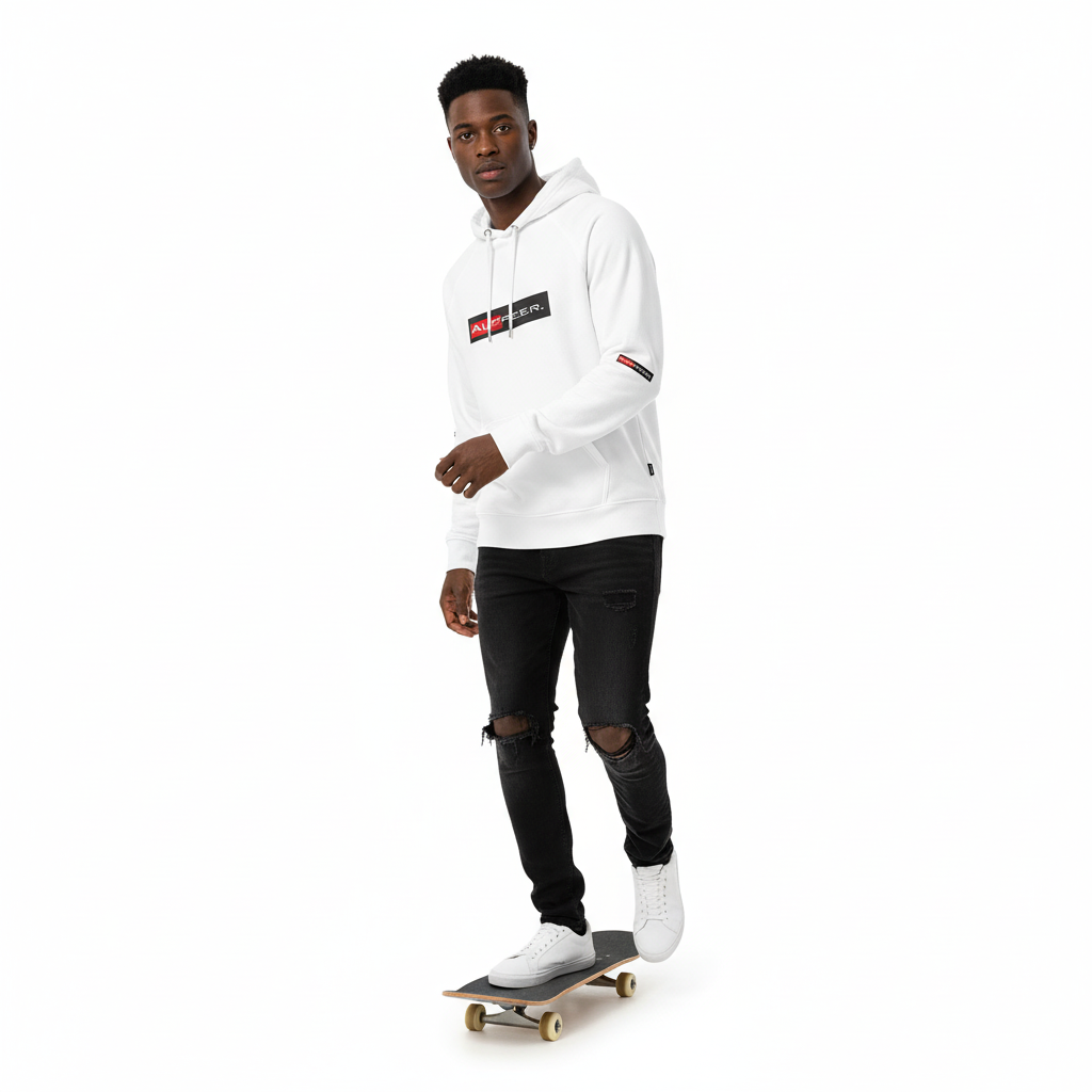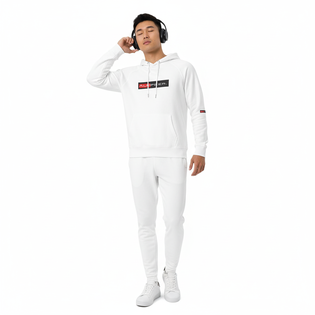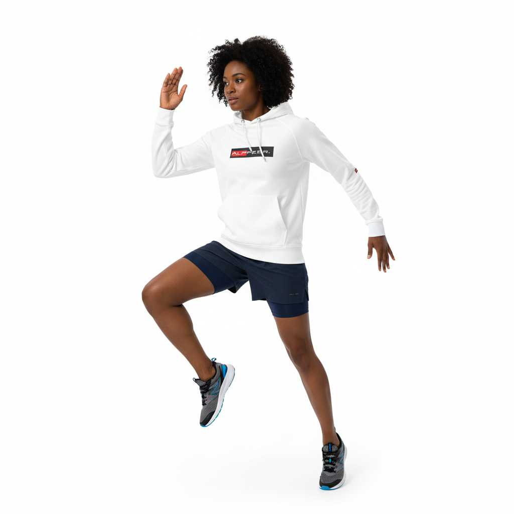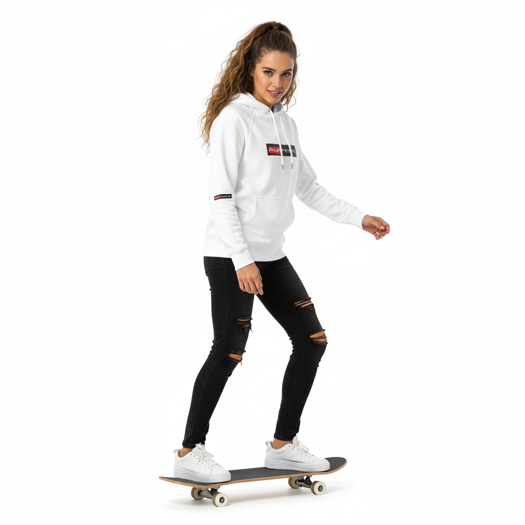 The Alppeer eco raglan hoodie combines conscious design with bold branding. Featuring the signature red and black ALPPEER logo box on a clean white base, this eco-friendly hoodie is your go-to piece for everything from casual weekends to active days.