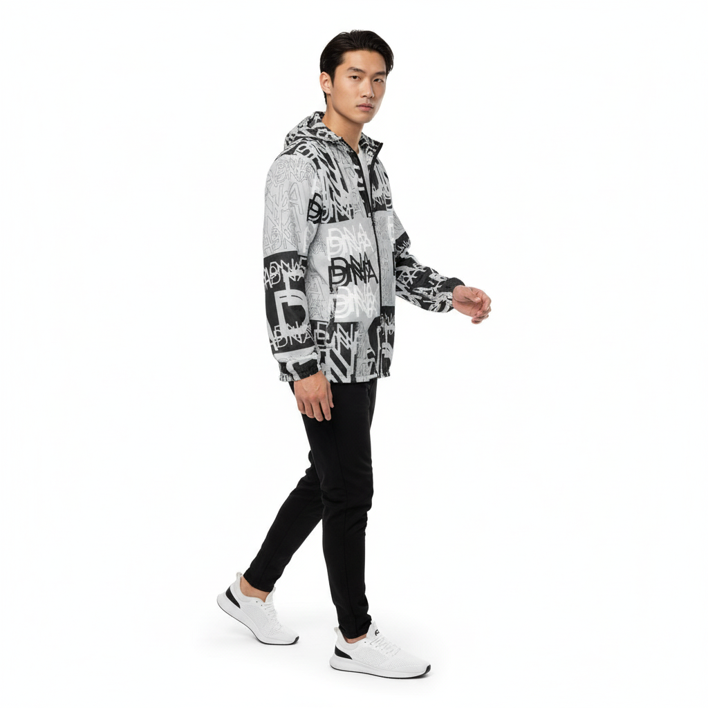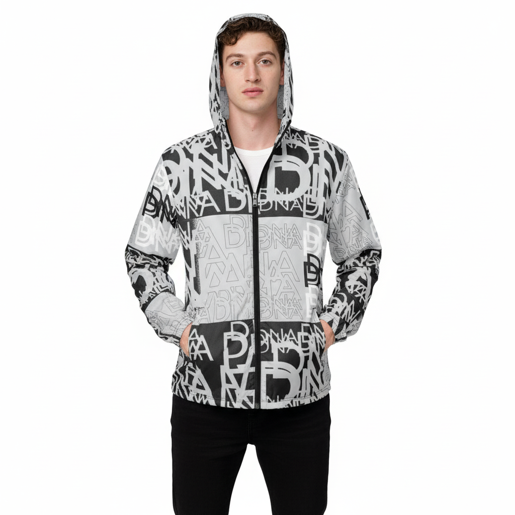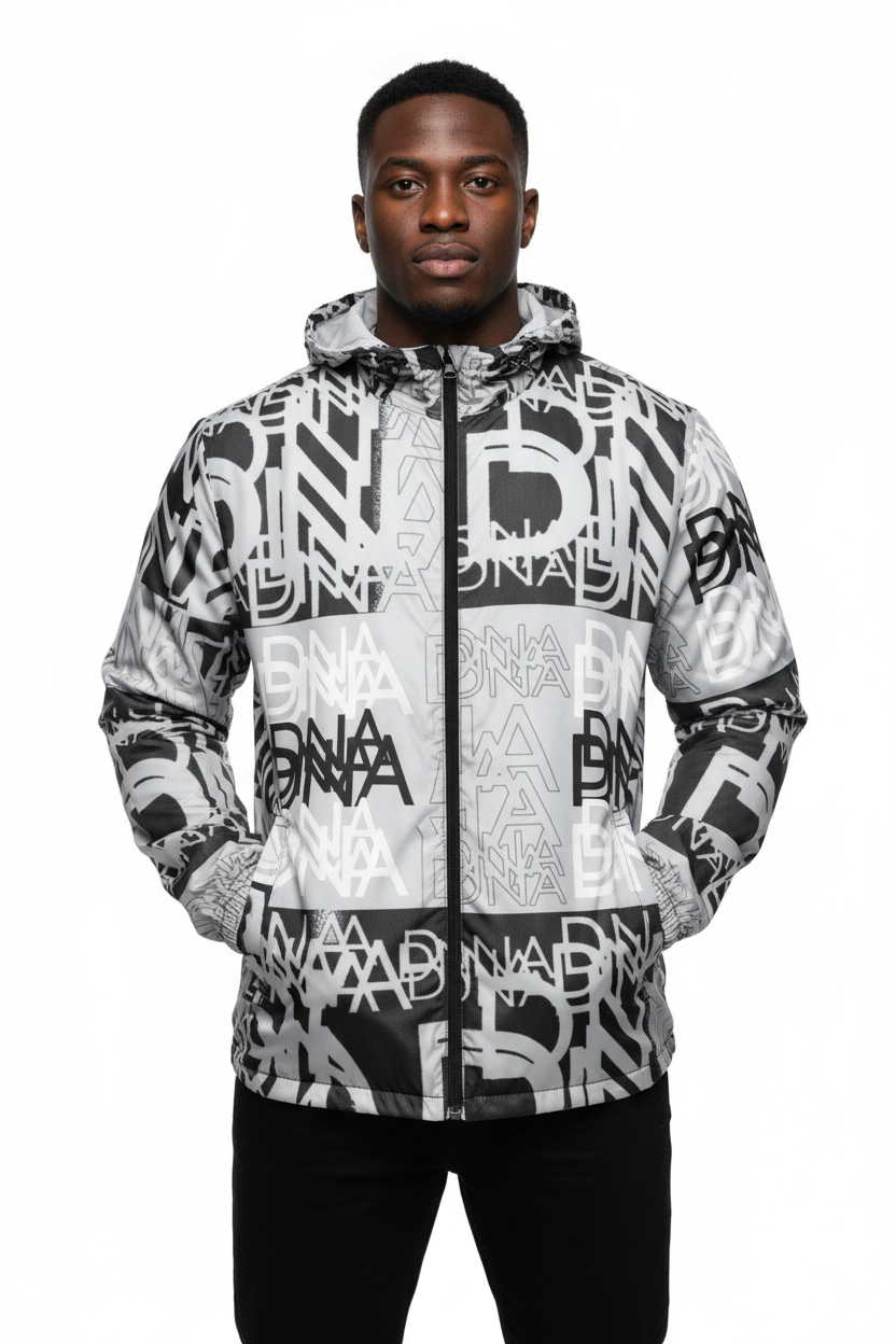 The DNA Men's Windbreaker is a bold statement piece that celebrates precision, design, and the intricate details that define who you are. Featuring an all-over graphic pattern in monochromatic black, white, and gray, this windbreaker commands attention while delivering serious performance for urban exploration and outdoor adventures.