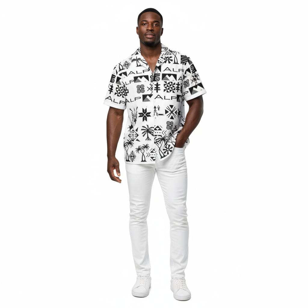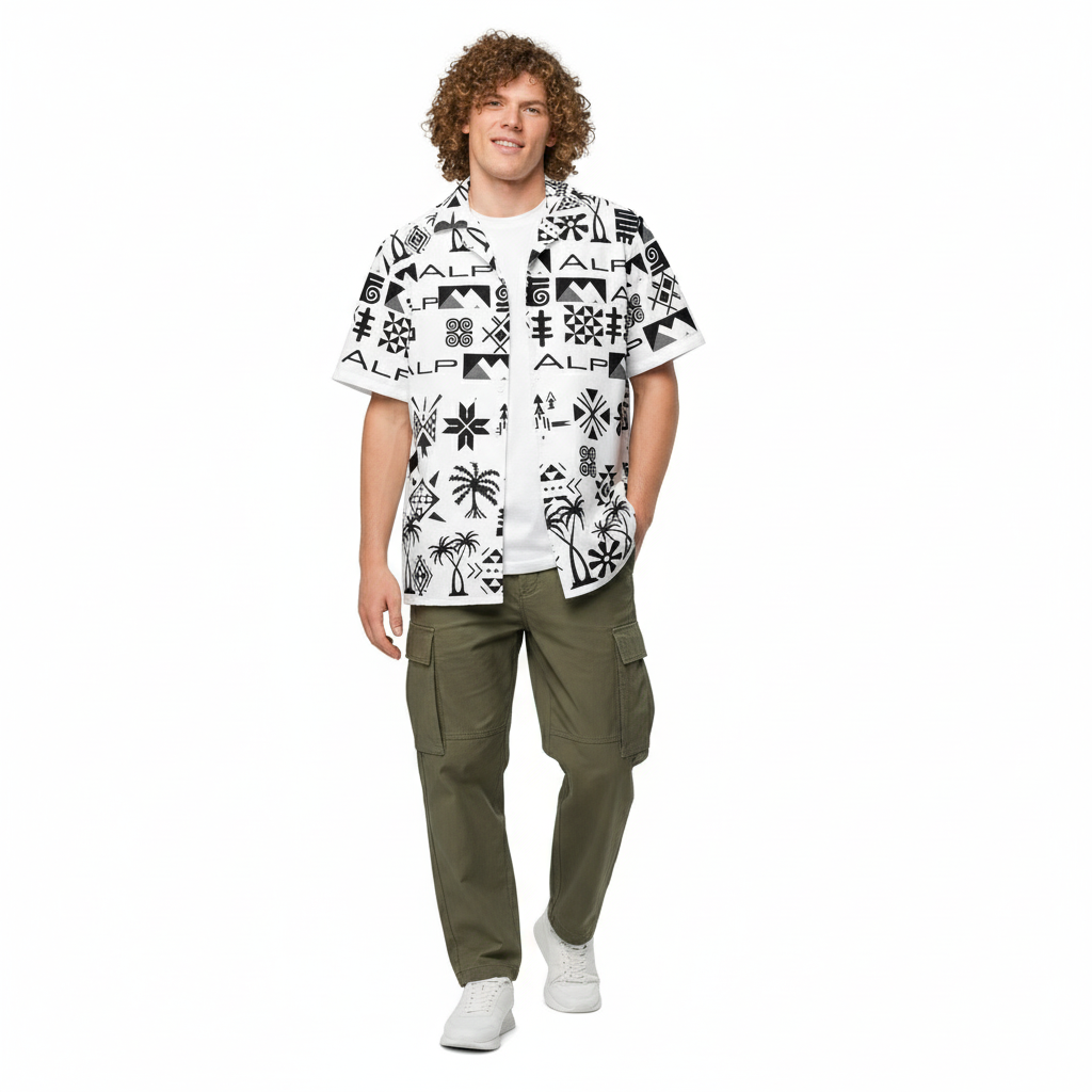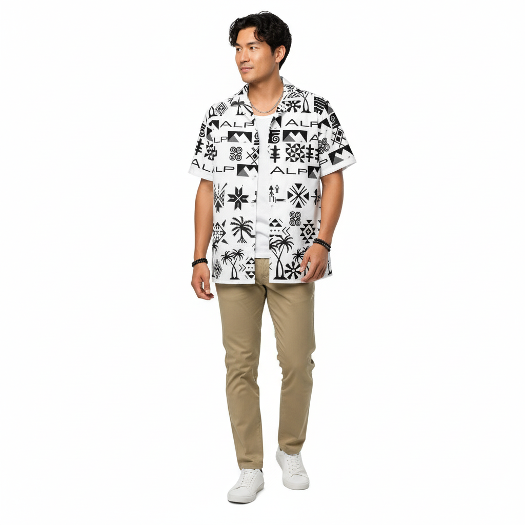 Make a statement with the Alppeer Culture button-up shirt—where bold abstract design meets premium comfort. This distinctive all-over print shirt brings artistic edge to your wardrobe, transitioning effortlessly from casual weekends to creative workspaces to evening outings.