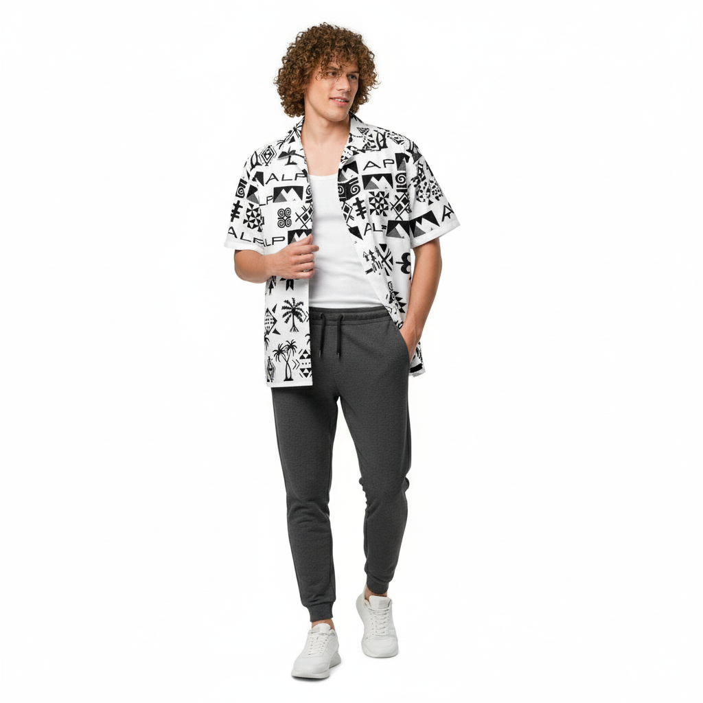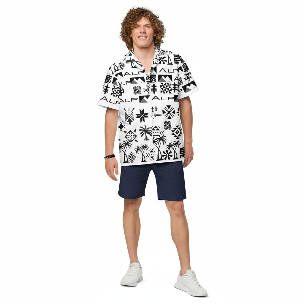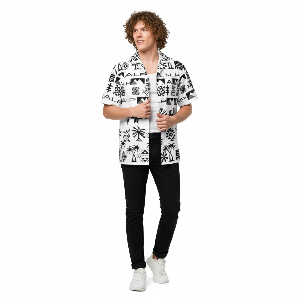 Make a statement with the Alppeer Culture button-up shirt—where bold abstract design meets premium comfort. This distinctive all-over print shirt brings artistic edge to your wardrobe, transitioning effortlessly from casual weekends to creative workspaces to evening outings.