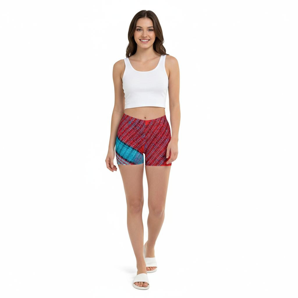 Make a dynamic statement with the Alppeer Diagonal Fusion Athletic Shorts. These eye-catching shorts feature bold diagonal striped patterns in vibrant red, turquoise blue, and white—creating a modern color-blocked design that captures energy and movement.