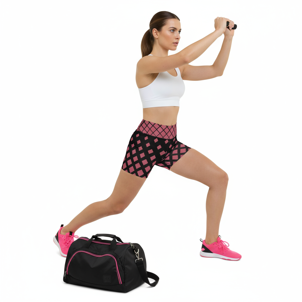 Style with a white or pink athletic tank top or sports bra and cross-training sneakers for an energetic gym workout vibe. Great for HIIT, strength training, circuit workouts, or CrossFit sessions.