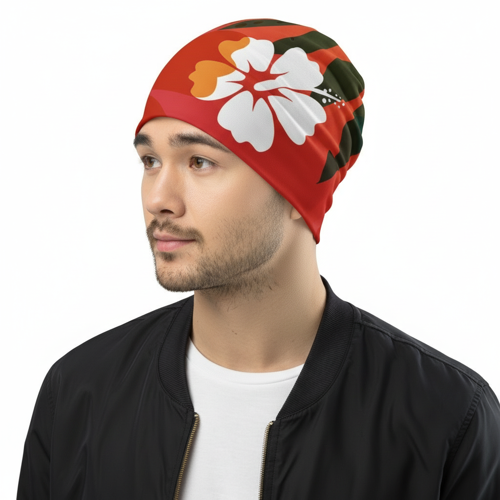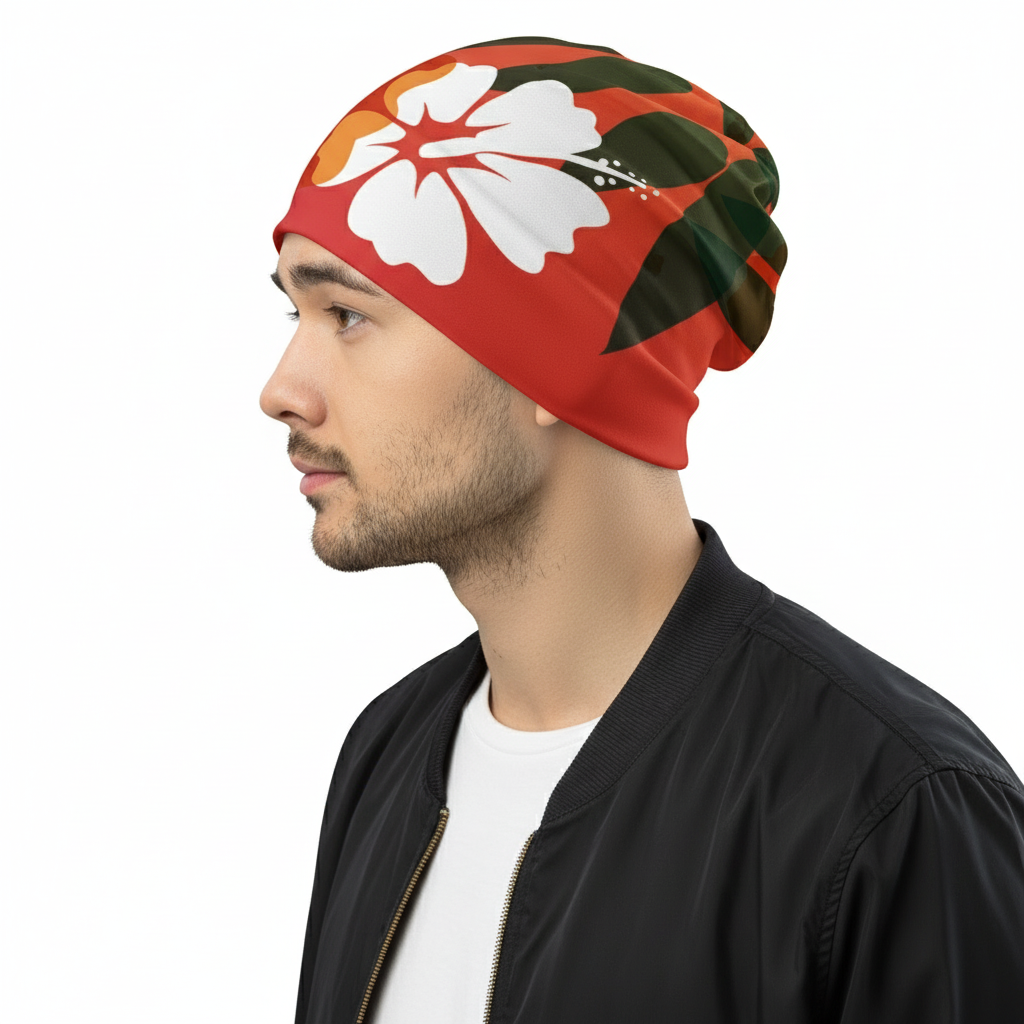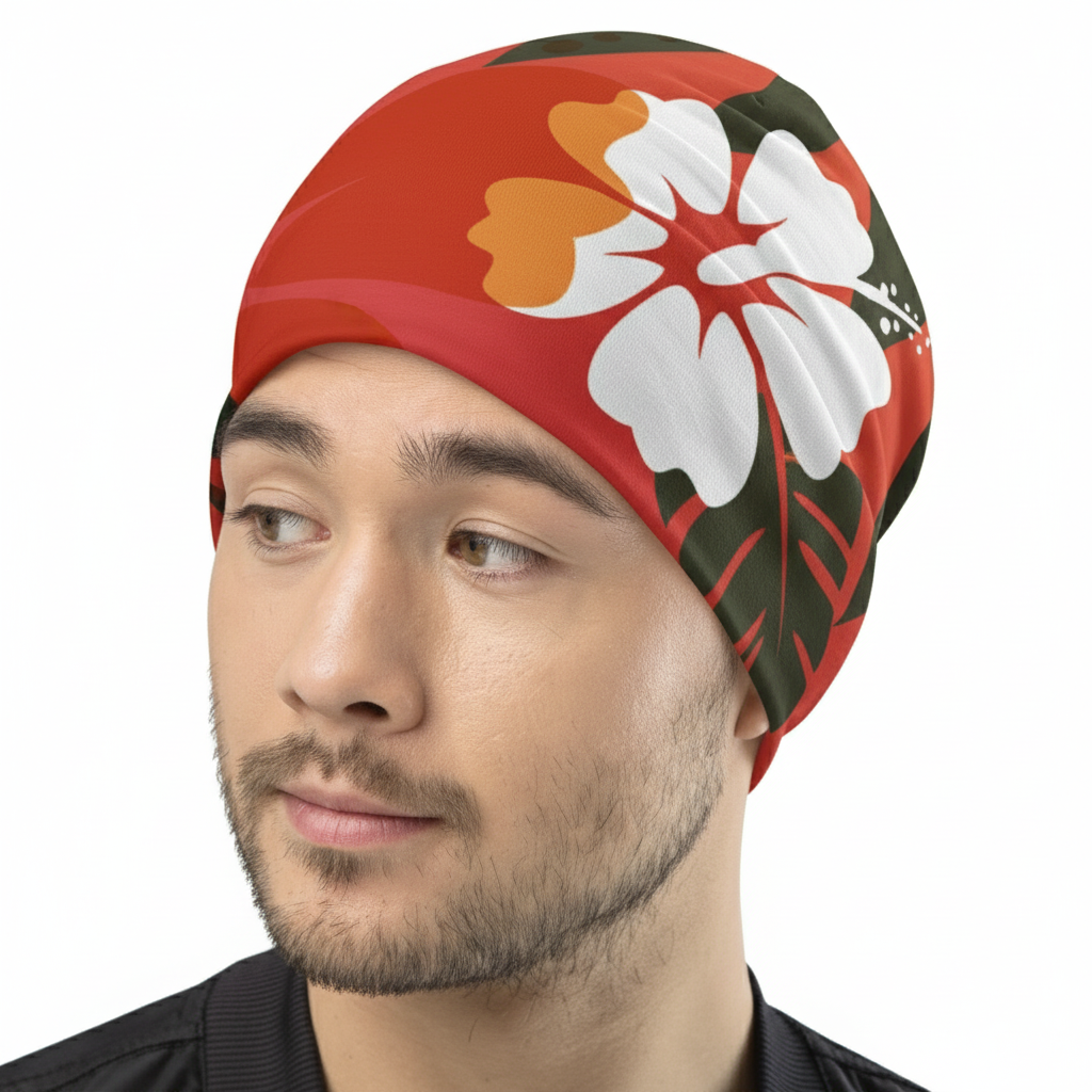 - All-Over Print Design – Vibrant Hawaiian-inspired graphics that cover the entire beanie for maximum visual impact
