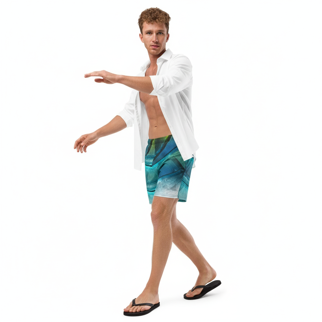 Dive into eco-conscious fashion with our Surfxion Recycled Swim Trunks—where vibrant African-inspired design meets premium sustainability. These eye-catching swim trunks feature a bold green and teal geometric pattern that celebrates cultural heritage while protecting our planet.