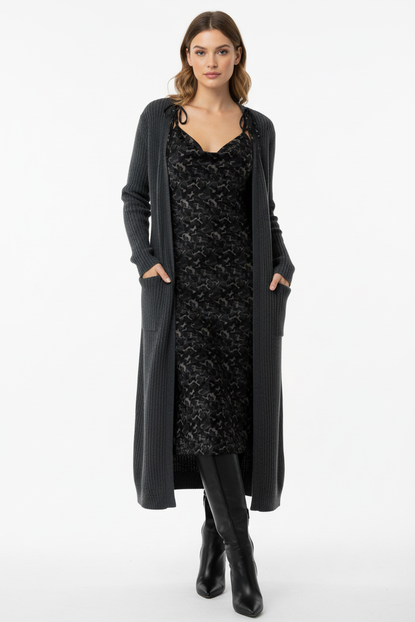 Style it sleek and minimal for modern sophistication, layer with a leather jacket for urban edge, or cinch with a belt to define your waist. From cocktail parties to date nights, gallery openings to rooftop dinners, this dress is your go-to for effortless elegance with a hint of mystery.