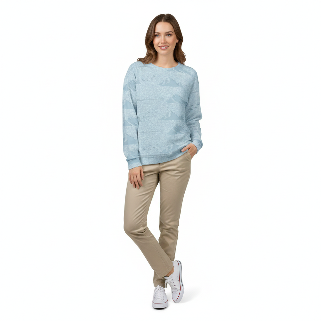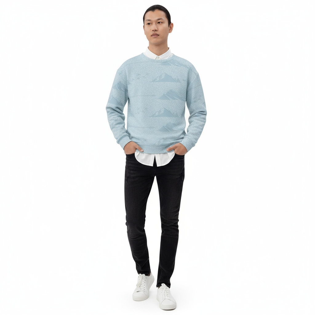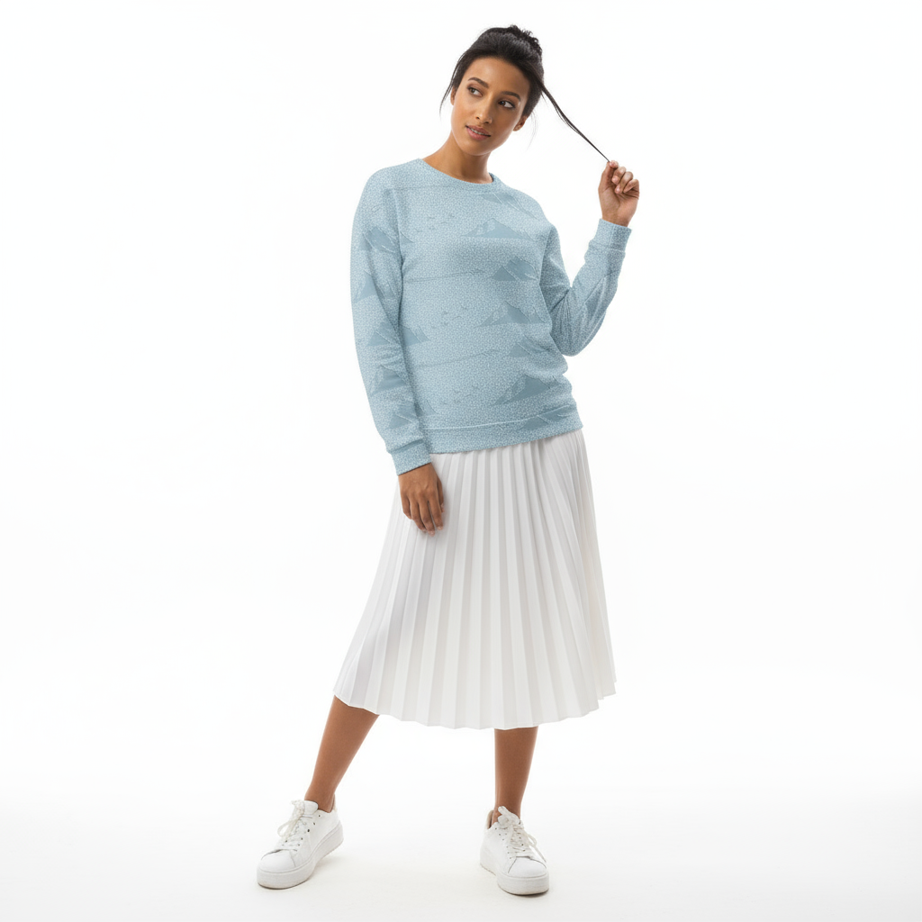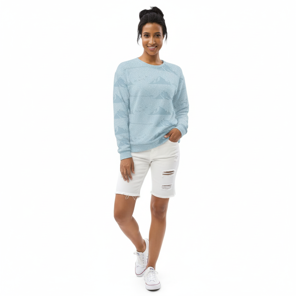 Discover the Alppeer's Terrains Unisex Sweatshirt – where sustainable comfort meets versatile style. Featuring a distinctive light blue terrain print that captures the spirit of adventure, this eco-friendly sweatshirt is crafted from recycled materials and designed to elevate your everyday wardrobe.