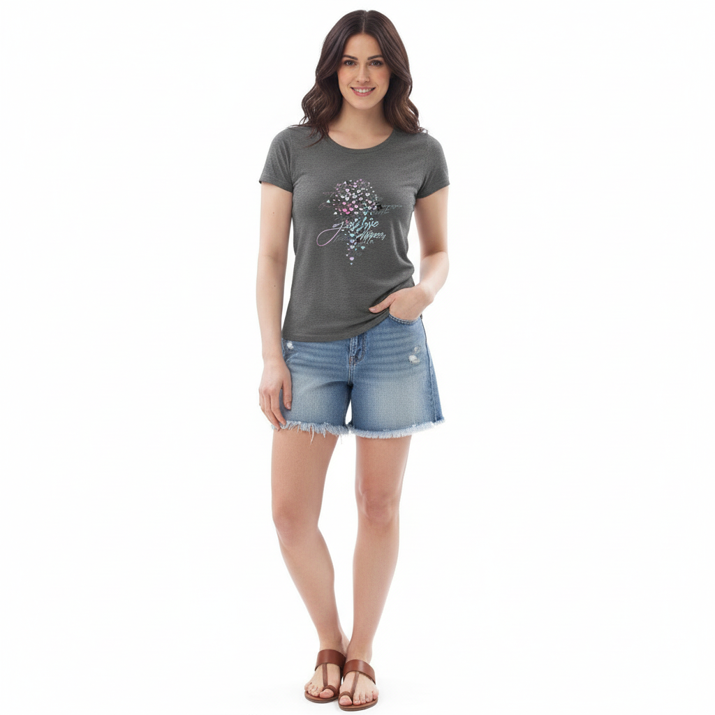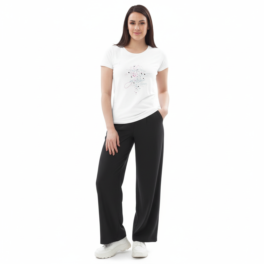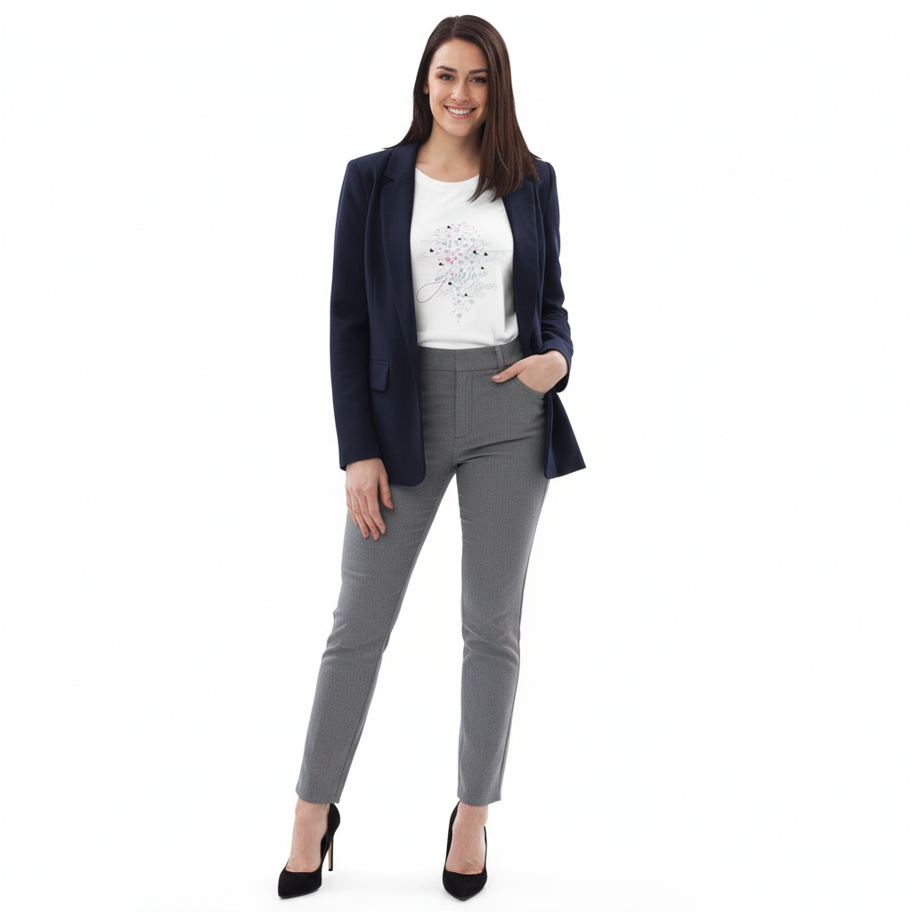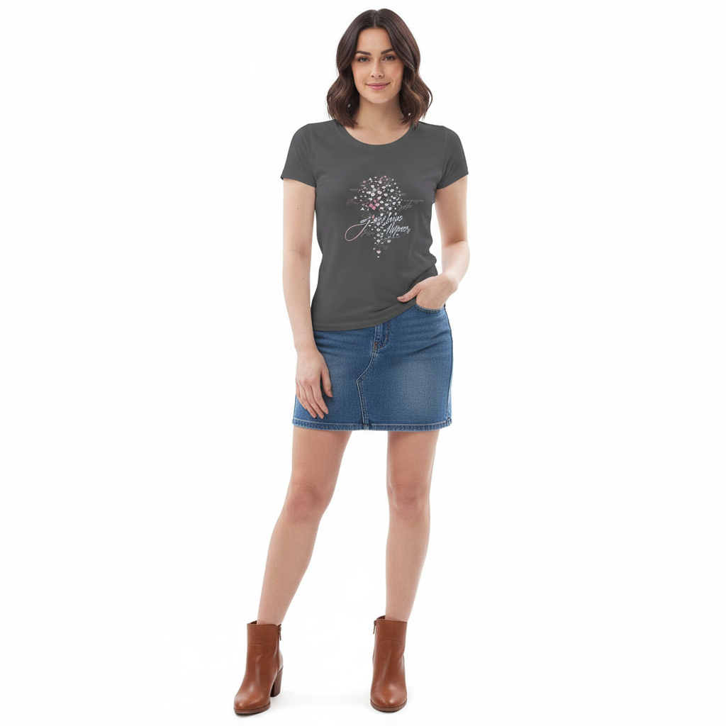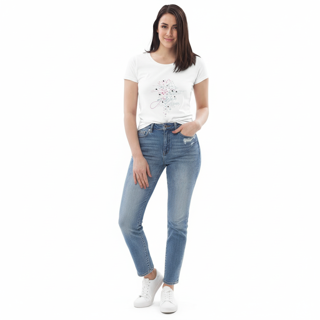 This fitted eco tee pairs beautifully with everything in your wardrobe. Style it with jeans for casual weekends, layer under blazers for smart-casual looks, pair with skirts for feminine appeal, or wear with joggers for comfortable athleisure. The flattering fit and soft organic cotton make it perfect for everyday wear, work, travel, or any occasion where comfort meets style.