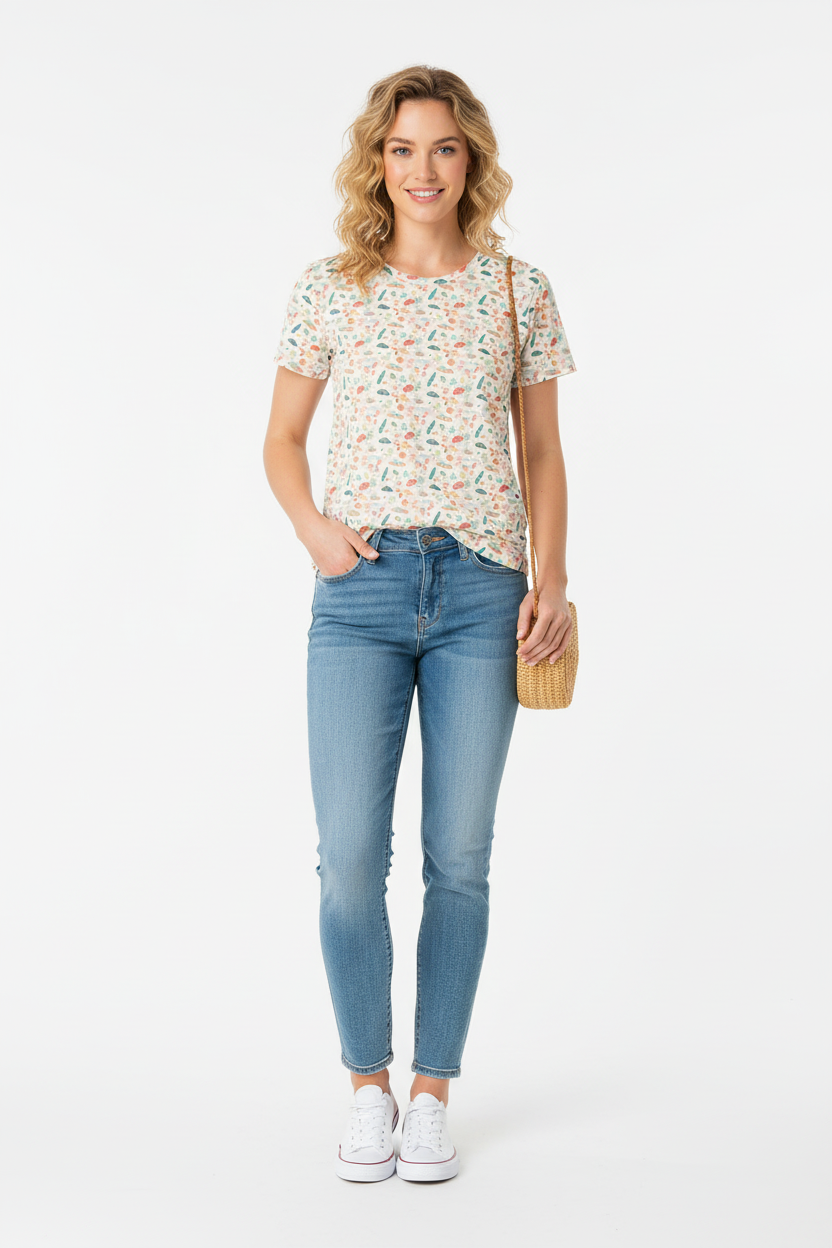 Pair with denim shorts and sandals for a classic beach-ready look, or style with white linen pants for a breezy summer outfit. Layer under a denim jacket for cooler evenings, or tuck into a skirt for a playful, polished finish. The coastal-inspired print works beautifully with neutrals, corals, and ocean blues.