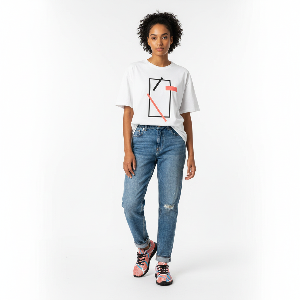 Casual Streetwear Look: Style with light wash denim jeans and a relaxed tee for laid-back everyday versatility. Ideal for weekend adventures, shopping trips, or casual outings.