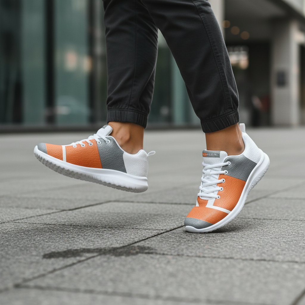 • Eye-Catching Design: Vibrant orange and grey color-block pattern with crisp white accents creates a modern, energetic look that stands out